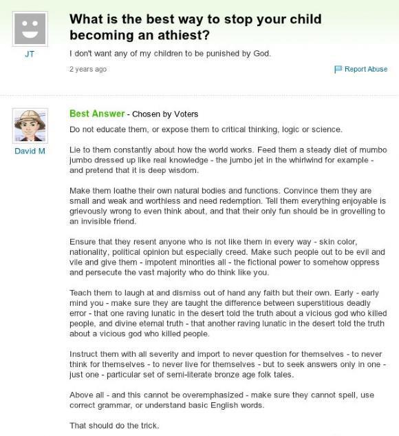 Možemo se na ovo lijepo nasmijati, ali je u stvari žalosno da postoje milijuni (a lako moguće i stotine milijuna!) roditelja koji ovakvu indoktrinaciju nad svojom djecom provode svaki dan!!!
