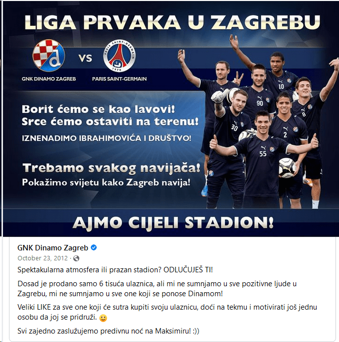 hahahaha, koja sprdačina od kluba :))) dolazi im PSG i oni uspjeli prodati 6.000 ulaznica! daj bože da vam Ibro uvali pet komada pa da Mamiću srce stane ![]()