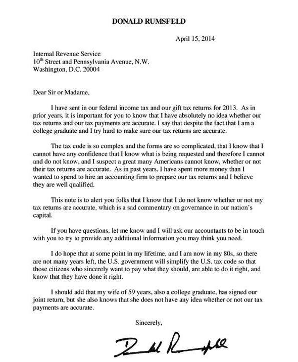 Donald Rumsfeld piše IRSu 🤣 Za kontekst vidi – http://www.economist.com/…/2014/04/donald-rumsfeld-s-taxes Podjeli ovo: Klikom podijelite na Facebooku(Otvara se u novom prozoru) Facebook Click to share on X(Otvara se u novom prozoru) X Lajk Učitavanje... Srodno poreziUSA
