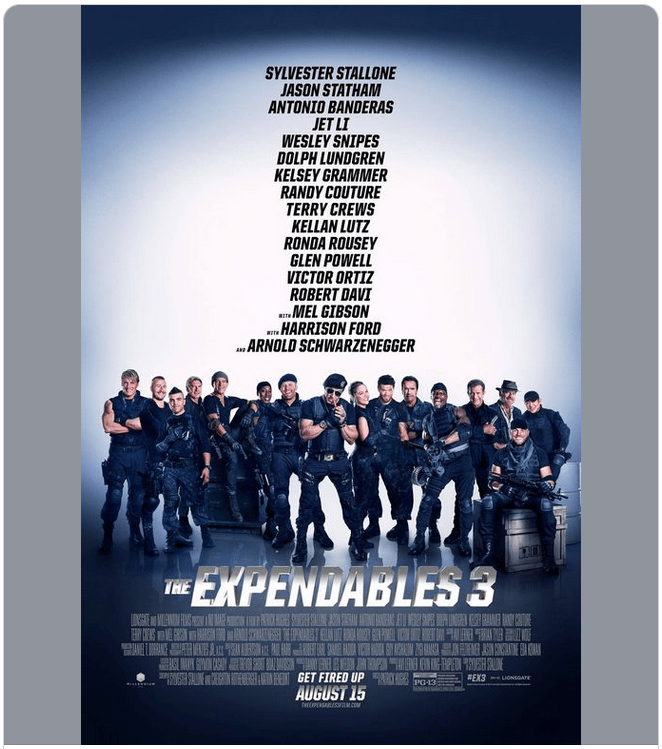 Koja ekipa! od najvećih zvijezda modernih akcijskih filmova, samo im fali Bruce Willis Podjeli ovo: Klikom podijelite na Facebooku(Otvara se u novom prozoru) Facebook Click to share on X(Otvara se u novom prozoru) X Lajk Učitavanje... Srodno Film & Glazba
