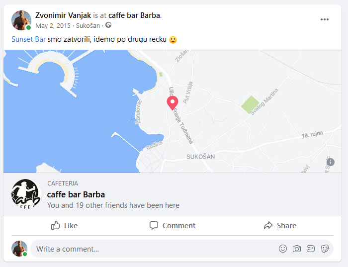 Na kraju je sigurno pa’ i check-in na Klupici kod Palaca 😎 … ali, za divno čudo, nije zabilježen na Facebooku 😂.
