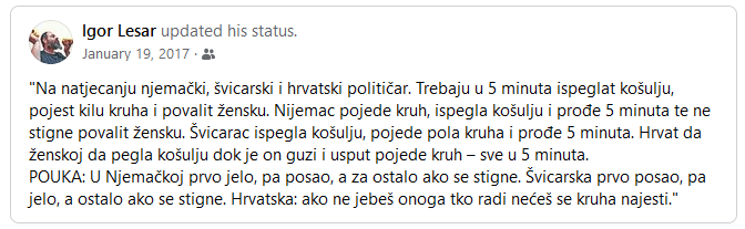Odličan!!! Podjeli ovo: Klikom podijelite na Facebooku(Otvara se u novom prozoru) Facebook Click to share on X(Otvara se u novom prozoru) X Lajk Učitavanje... Srodno Fore & vicevi