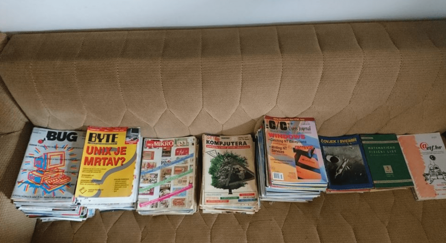 Sređujem biblioteku časopisa mog djetinjstva i mladosti … svih prvih 50 brojeva Buga, svi brojevi Hr izdanja Bytea, Moj mikro, Svet kompjutera, Čovjek i svemir