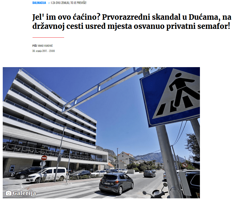 Ovo je VRH i nema dalje!!! Vlasnik hotela je samoinicijativno POSTAVIO SEMAFOR NA MAGISTRALU, a, “kako bi mu gosti hotela imali siguran prolaz do plaže”