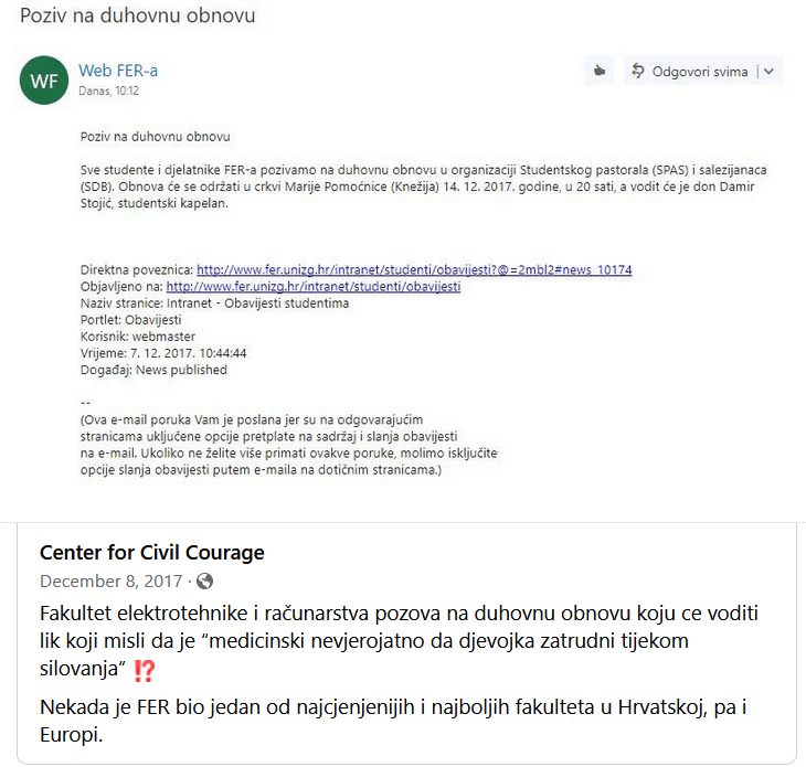 Damir Stojić će na FERu držati “duhovnu obnovu”??? Baš me zanima je li to “smjer u kojem mlada uprava vodi fakultet”? Mislim ok, da su doveli nekog poput pokojnog Bonaventure, pa ajde nekako … ali ovog maloumnika Stojića??? Podjeli ovo: Klikom podijelite na Facebooku(Otvara se u novom prozoru) Facebook Click to share on X(Otvara se u novom prozoru) X Lajk Učitavanje... Srodno FERReligija