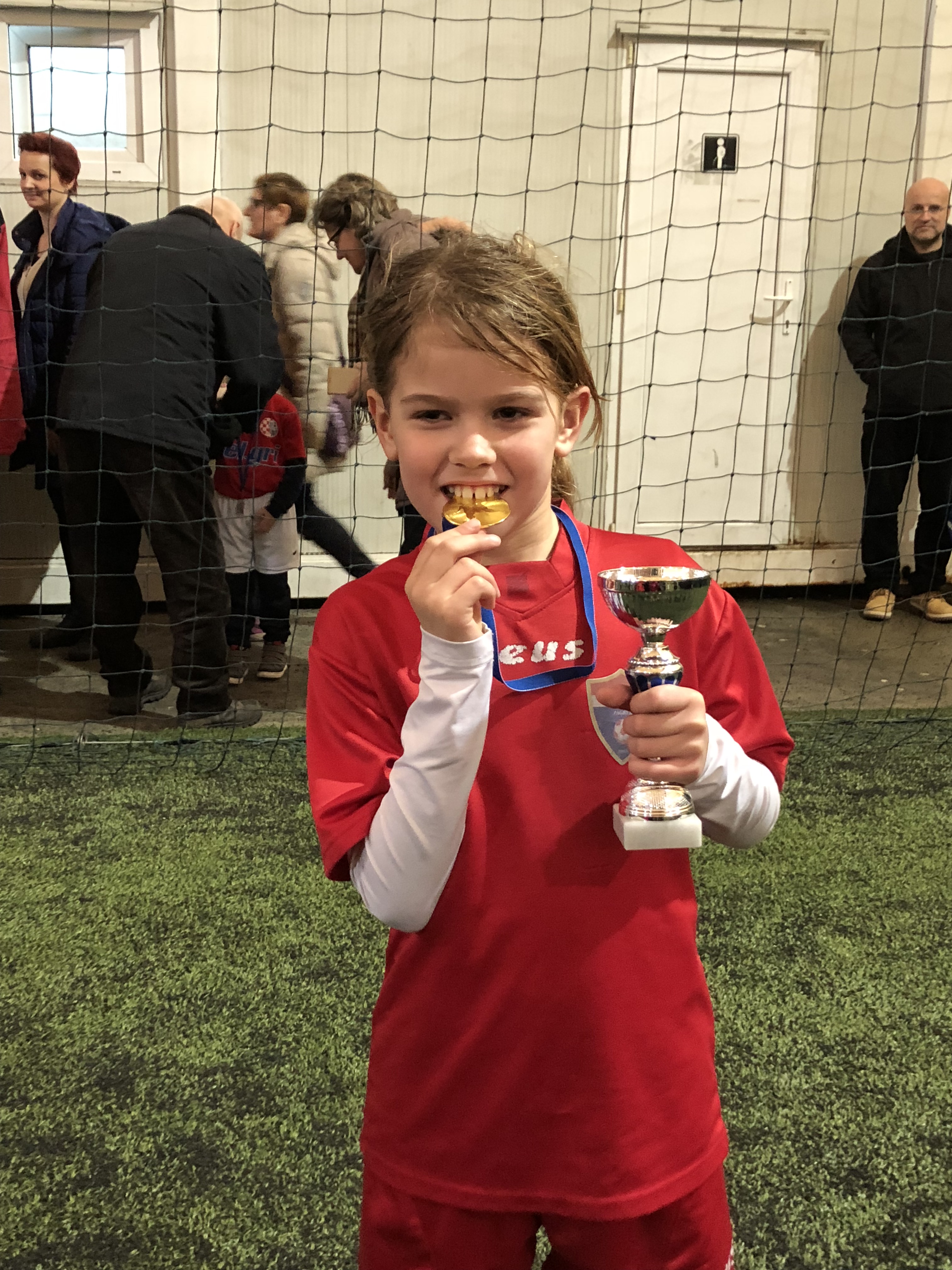 Uz danas postignuta dva gola (uz tri asistencije) u pobjedi Gavrana nad Poletom 9:0, čime je Gavran bez poraza osvojio 1. mjesto na turniru Zimska liga Sv. Klara 2018, Lu je uvjerljivo osvojila svoj prvi nogometni pehar – za titulu najboljeg strijelca turnira ❤️❤️❤️.