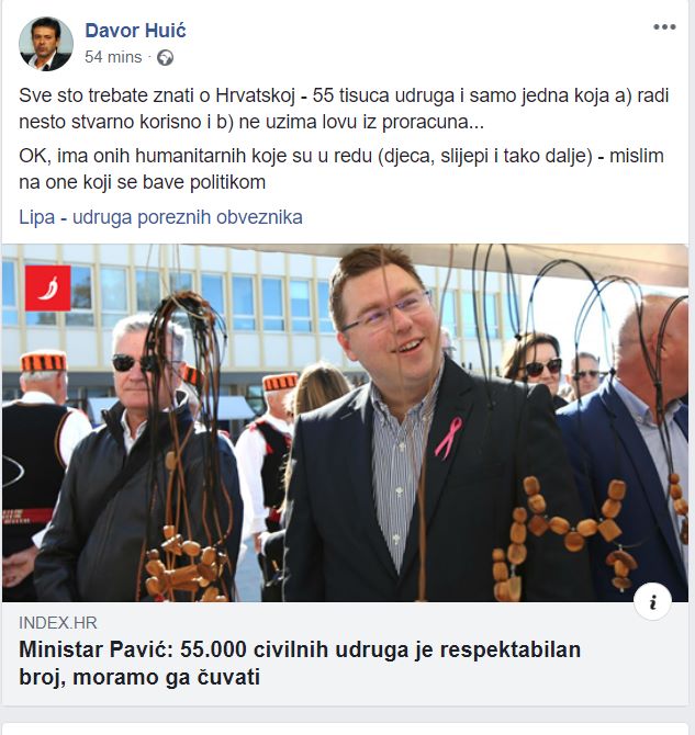 Bilo bi grijehota da se ovo ne zapiše za povijest (srića da sam mrknuo screenshot prije nego što je Davor izbrisao post!) – kako libertarijanci doživljavaju sebe u ovom društvu! Pazi ti ovo, oni su “jedina udruga koja radi nešto korisno” ![]()