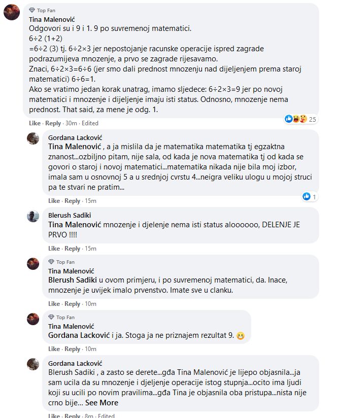 Znači u “staroj” matematici “množenje ima prednost pred dijeljenjem” a u “novoj” matematici “množenje nema prednost” 😃 😃 😃 😃 😃 😃 😃 😃 😃 😃 😃 😃 😃 😃 😃