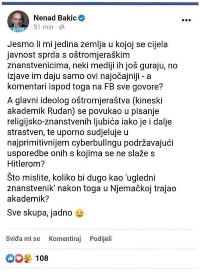U medjuvremenu, kretenoid Nenad Bakić i dalje širi svoje idiotske ideje.