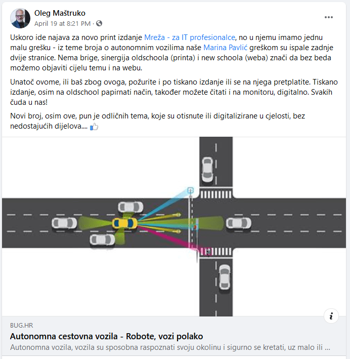 no u njemu imamo jednu malu grešku – iz teme broja o autonomnim vozilima naše Marina Pavlić greškom su ispale zadnje dvije stranice.