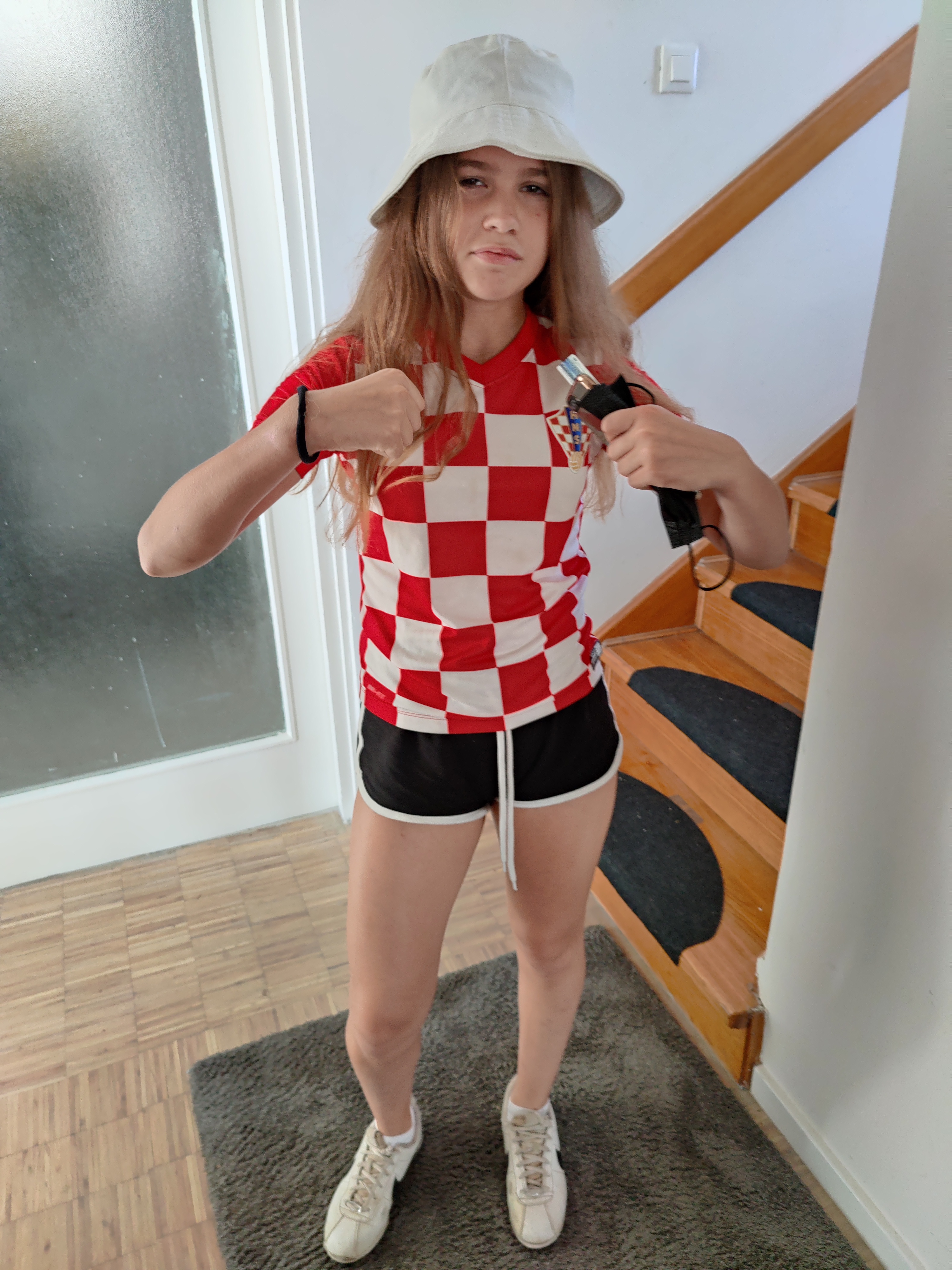 Ja napišem u obiteljsku grupu da ženski dio ekipe (Toni je već angažiran na bojanju ograde) ima dvi ure zalijevanja danas jer treba zaliti pomidore, krumpire, ruže, fotinije, … a mala se za 15 minuta pojavi: “E, ja idem s frendicama iz kluba na Trg gledati utakmicu”!??? 🤣🤣🤣