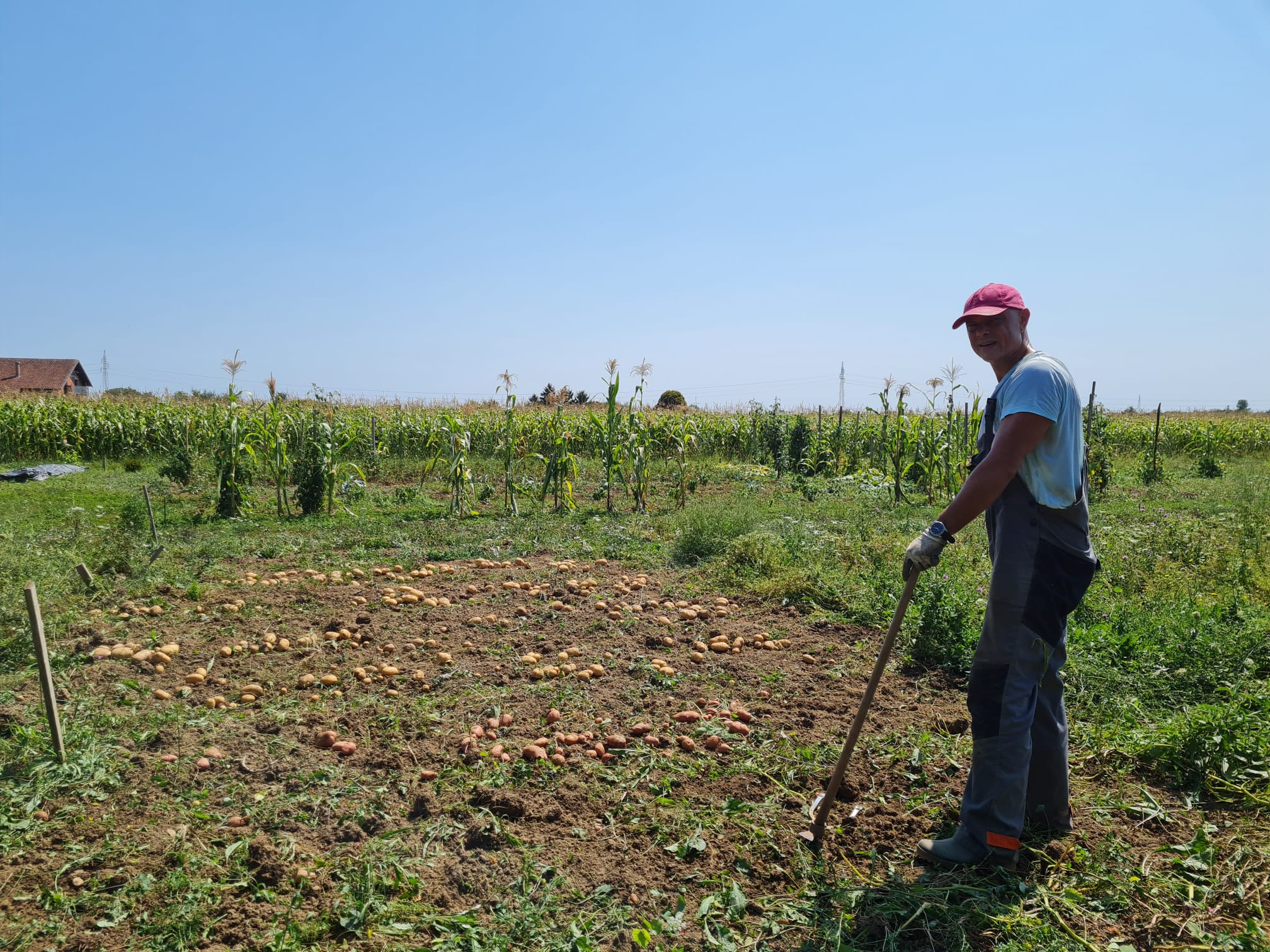 Da ne bi mislili da sam nekako magično u pola godine postao vrhunski poljoprivrednik – paprike i jagode su bile totalni fail (počupao ih mjesec dana nakon sadnje), pomidori su ispali parcijalni fail (stavio sam preslabe kolce i posadio ih preblizu, k’o da nemam zemlje, i kad se to porušilo nastala je prava pomidorska džungla – al ipak smo ubrali 30ak kila), a eto, krumpiri su ispali dobri.