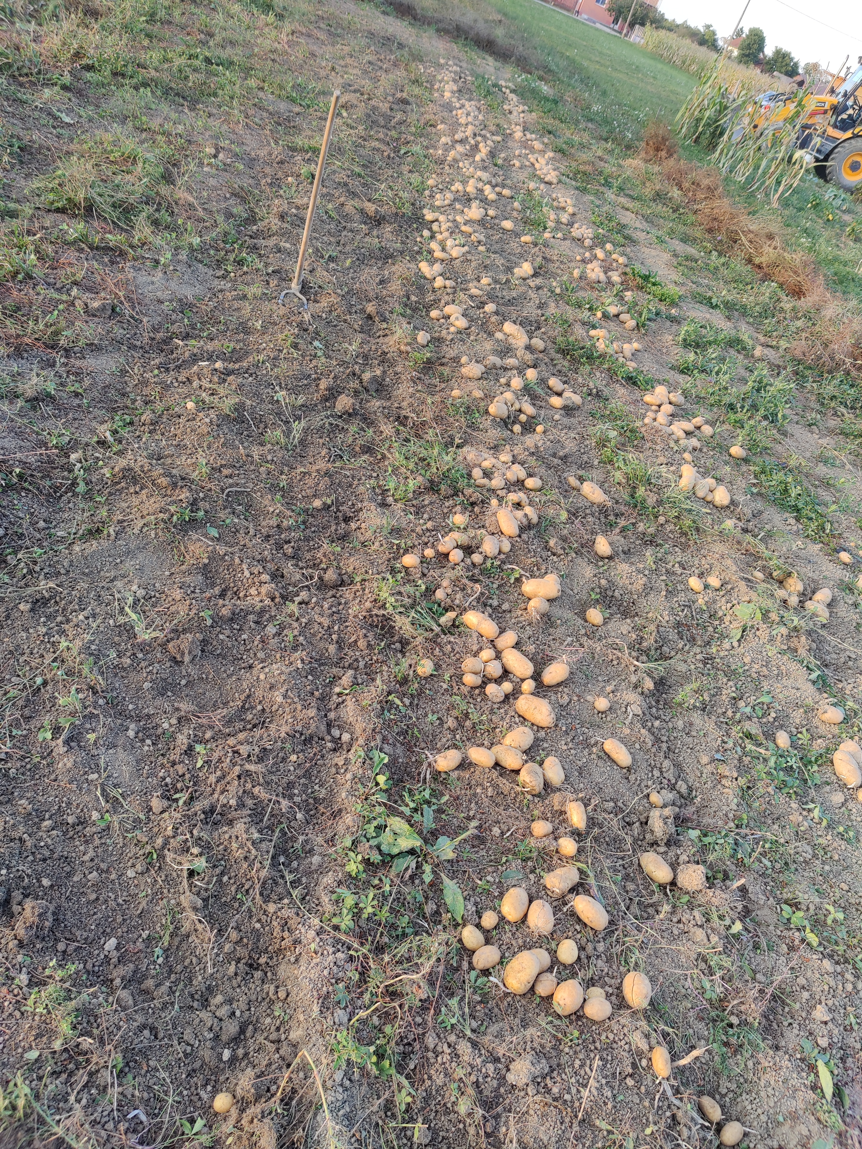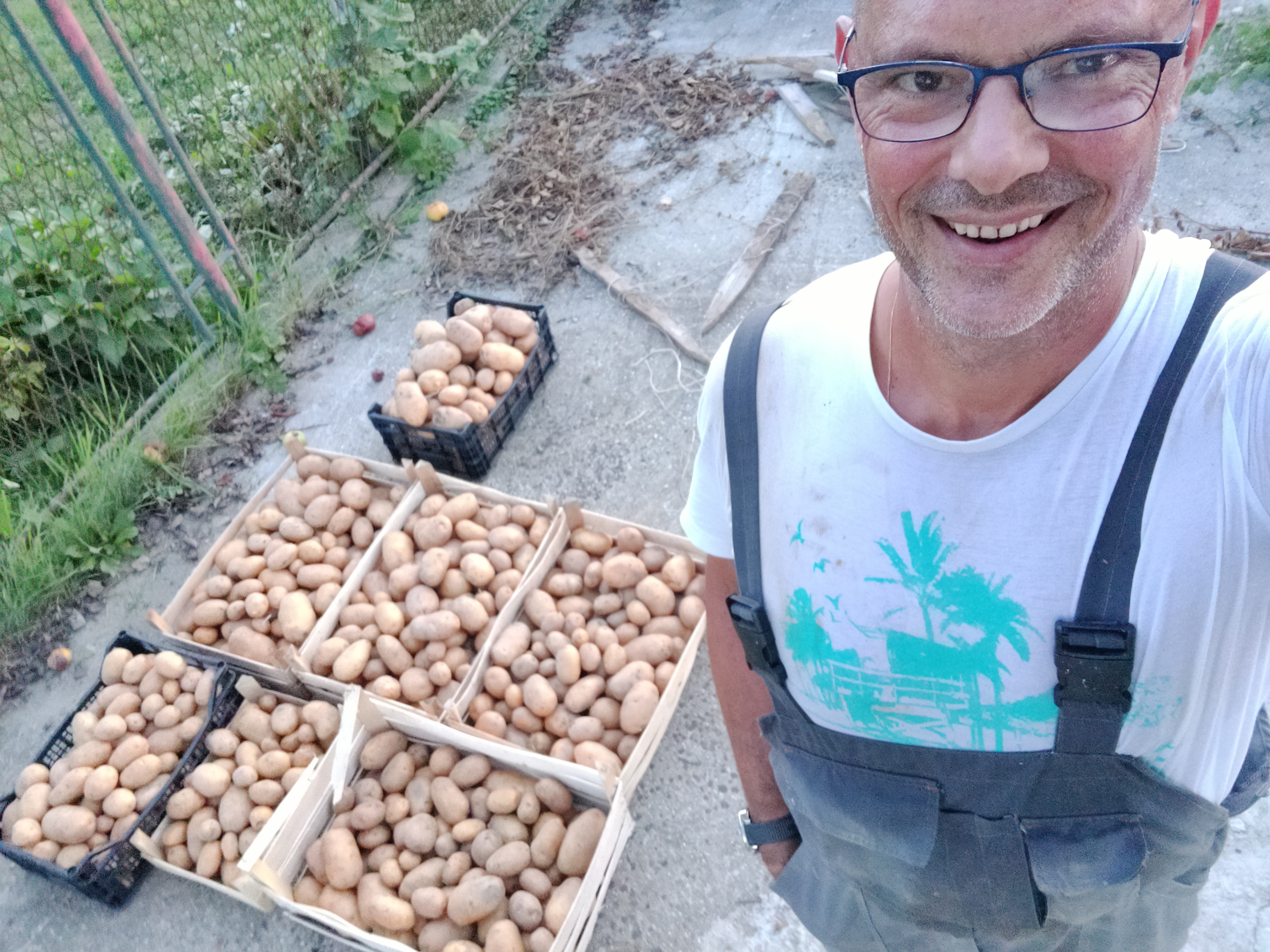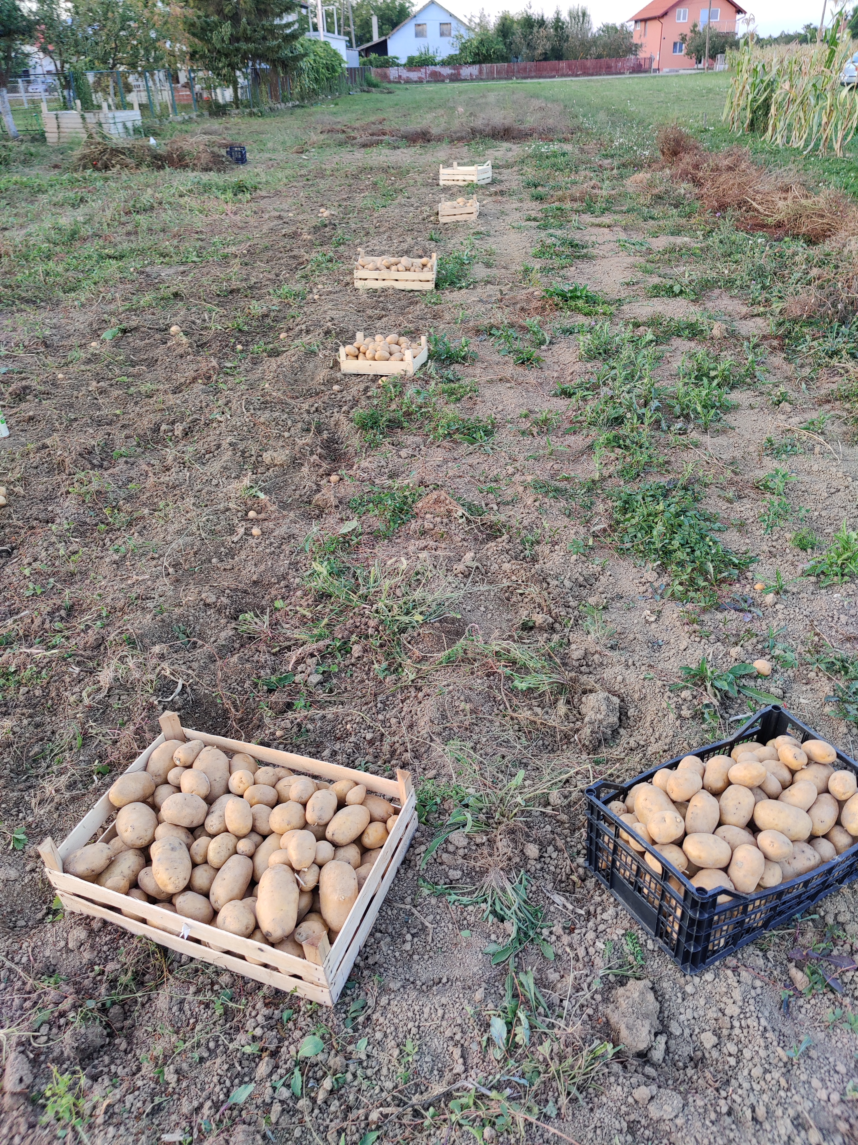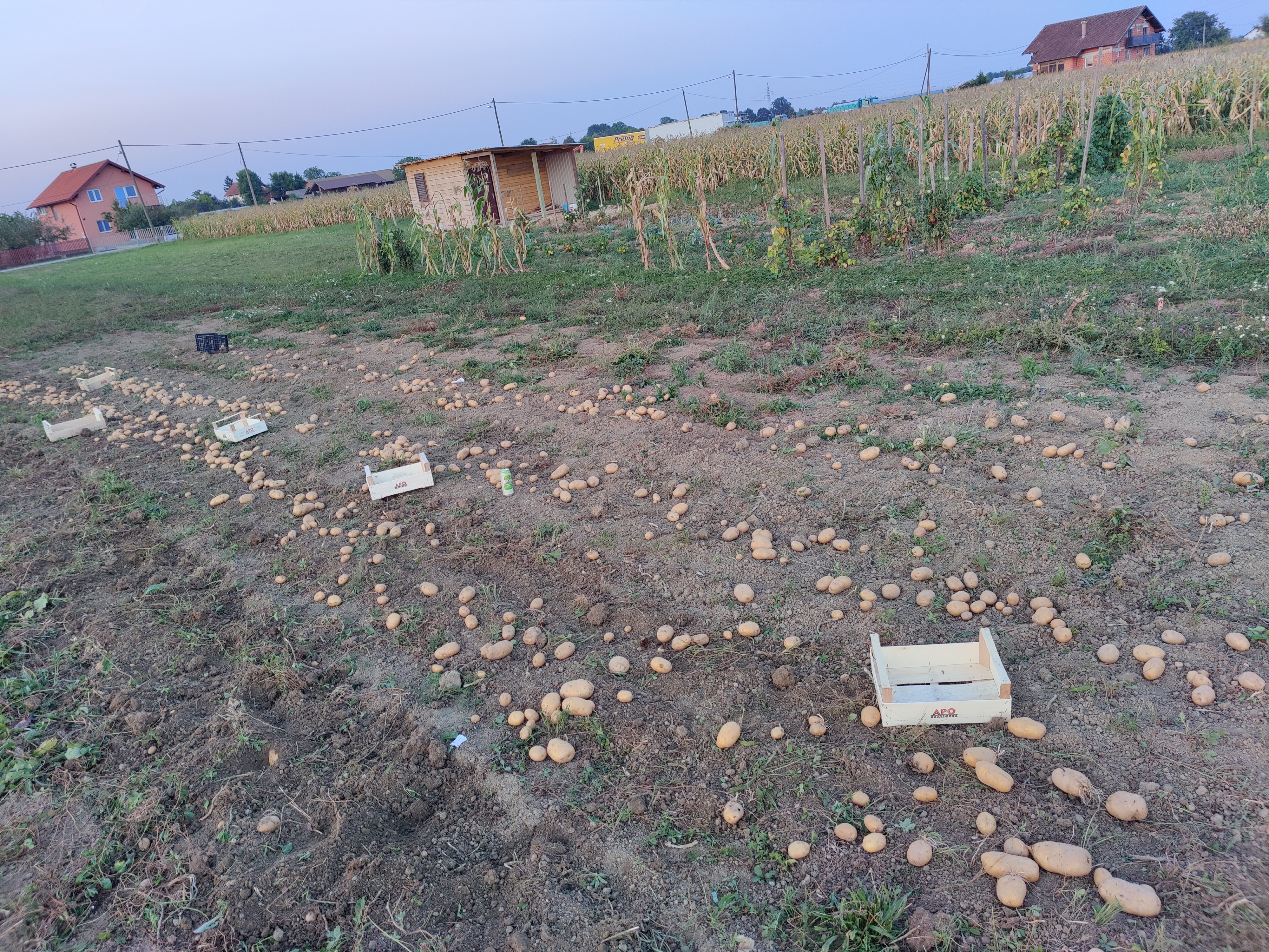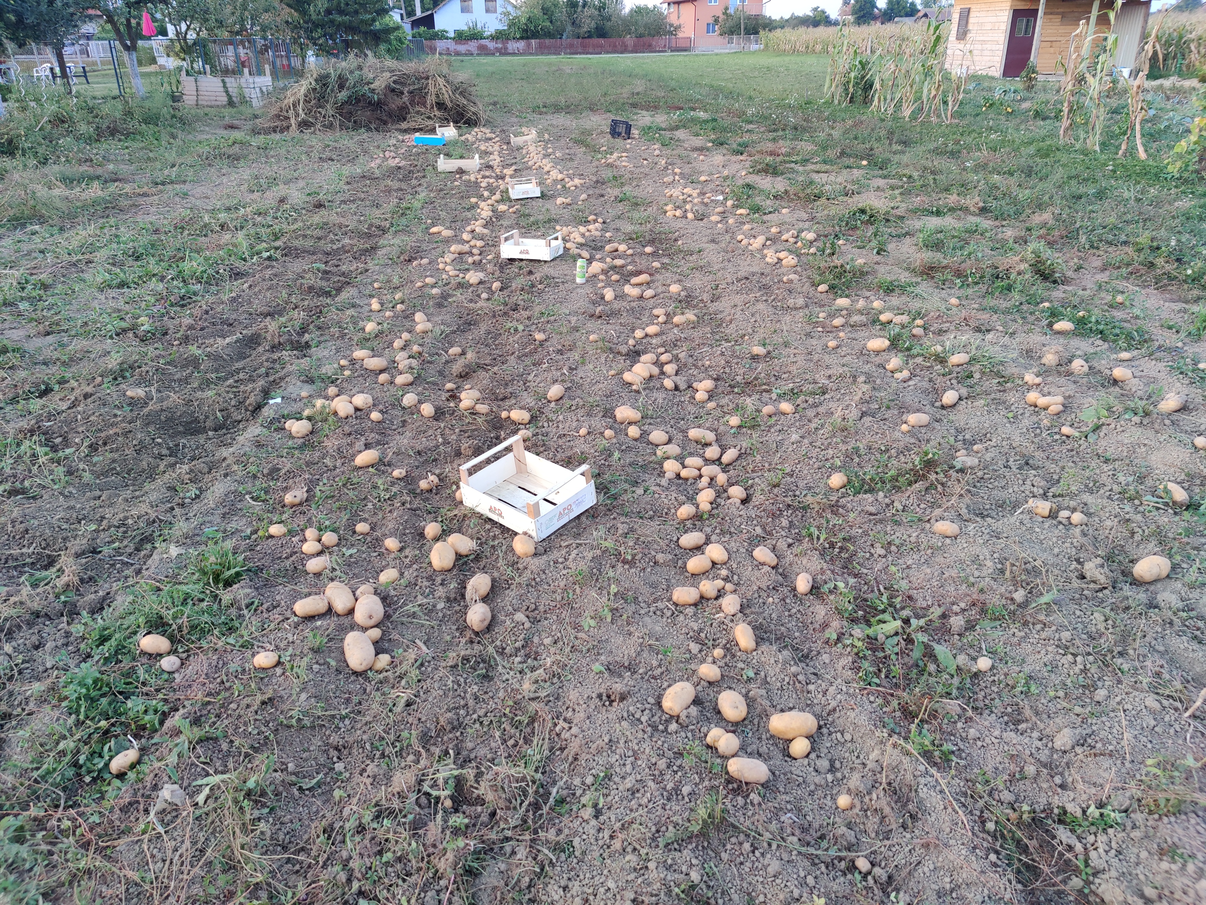Vađenje krumpira se pokazalo kao prilično isrpljujući posao 🤣🤣🤣, tako da sam ga odradio u pet (5!) iteracija. Dogodine ćemo ih svakako vaditi strojno (ima tu susjed mašinu tako da ćemo se lako dogovoriti), da sebi olakšam … ali i da ih manje posječem i upropastim (po mojoj stručnoj procjeni zbog mog nestručnog rukovanja motikom, odnosno “rogama”, bar jedno 10% sam ih posjekao 🤣).