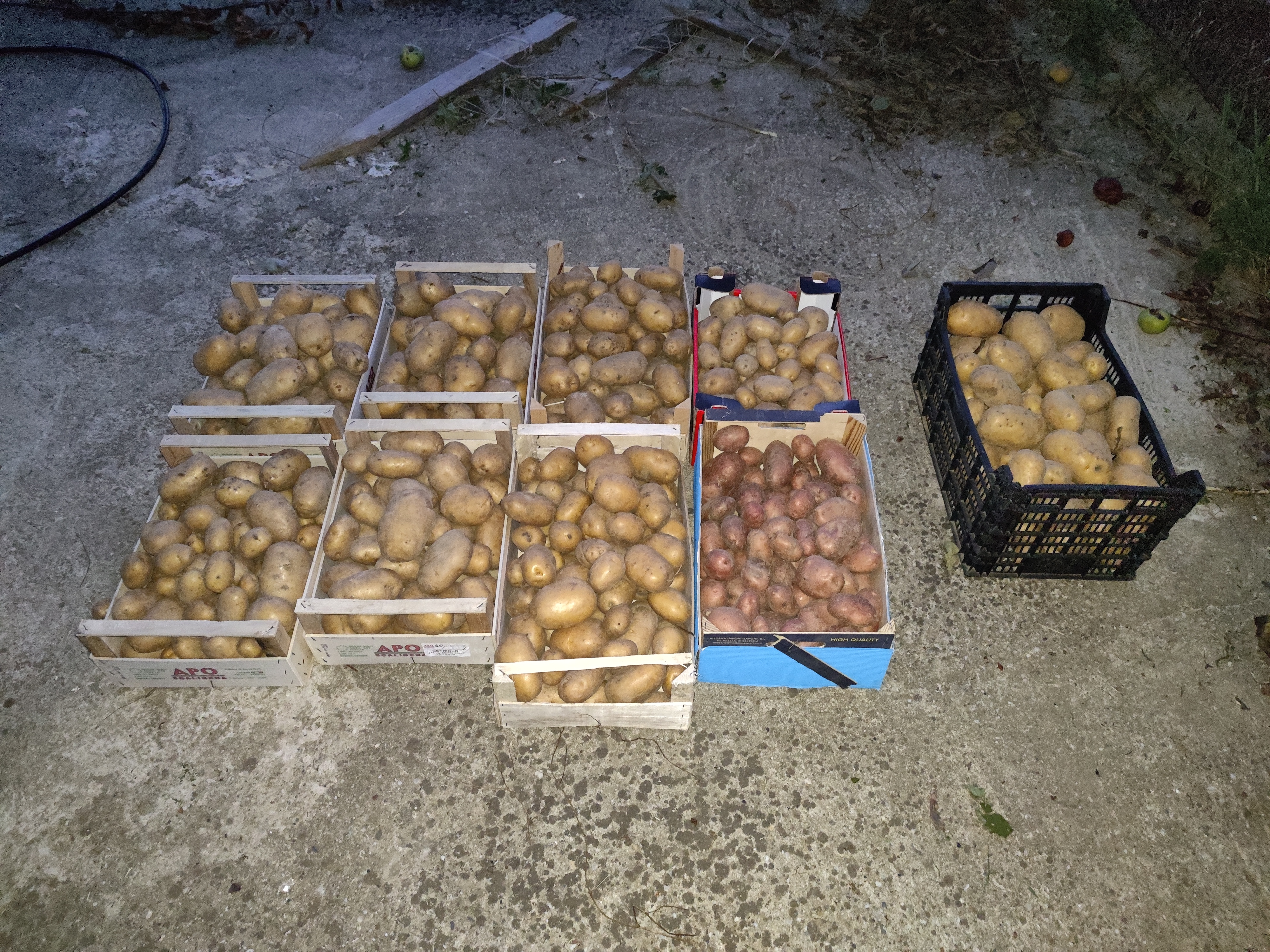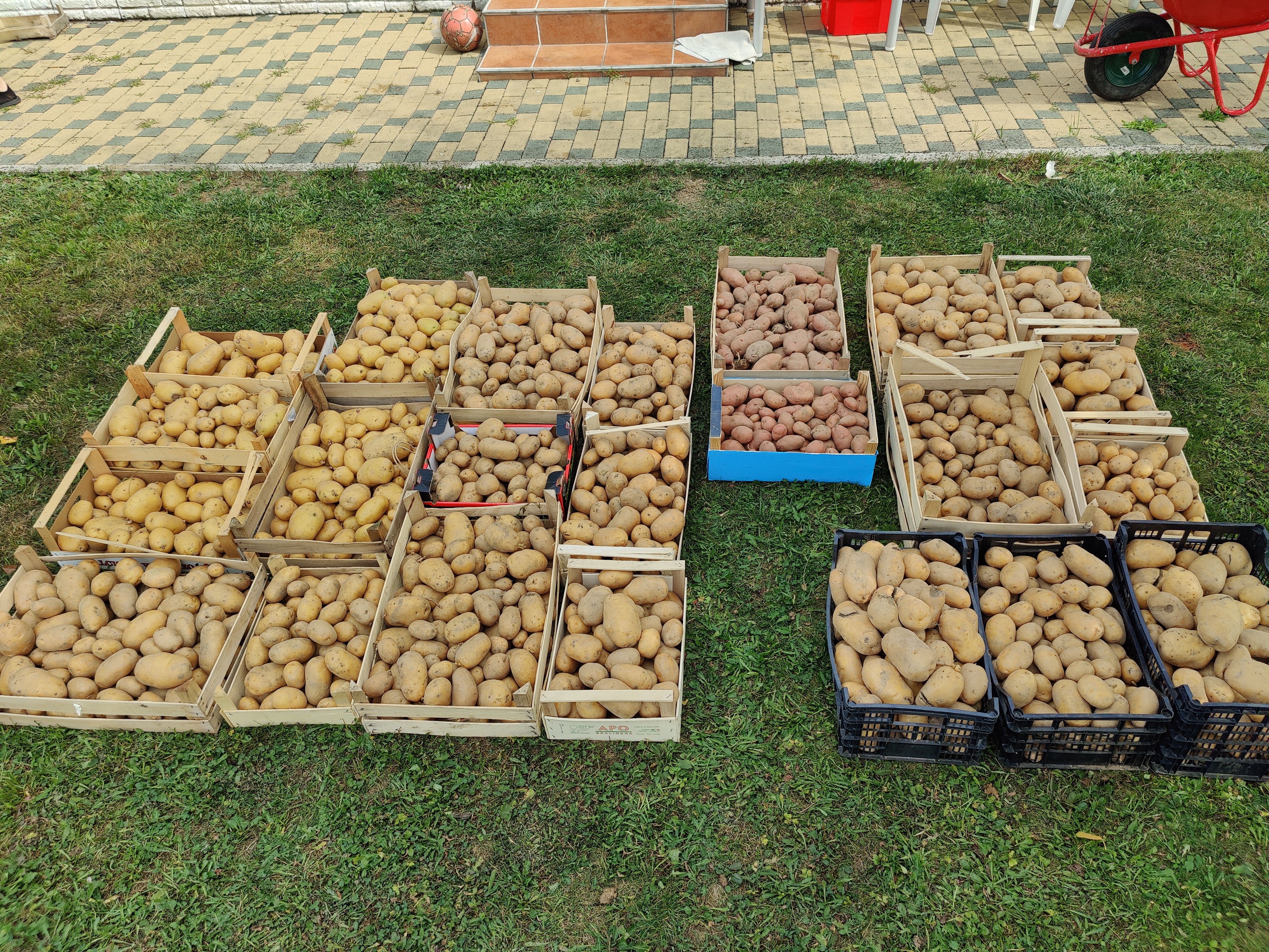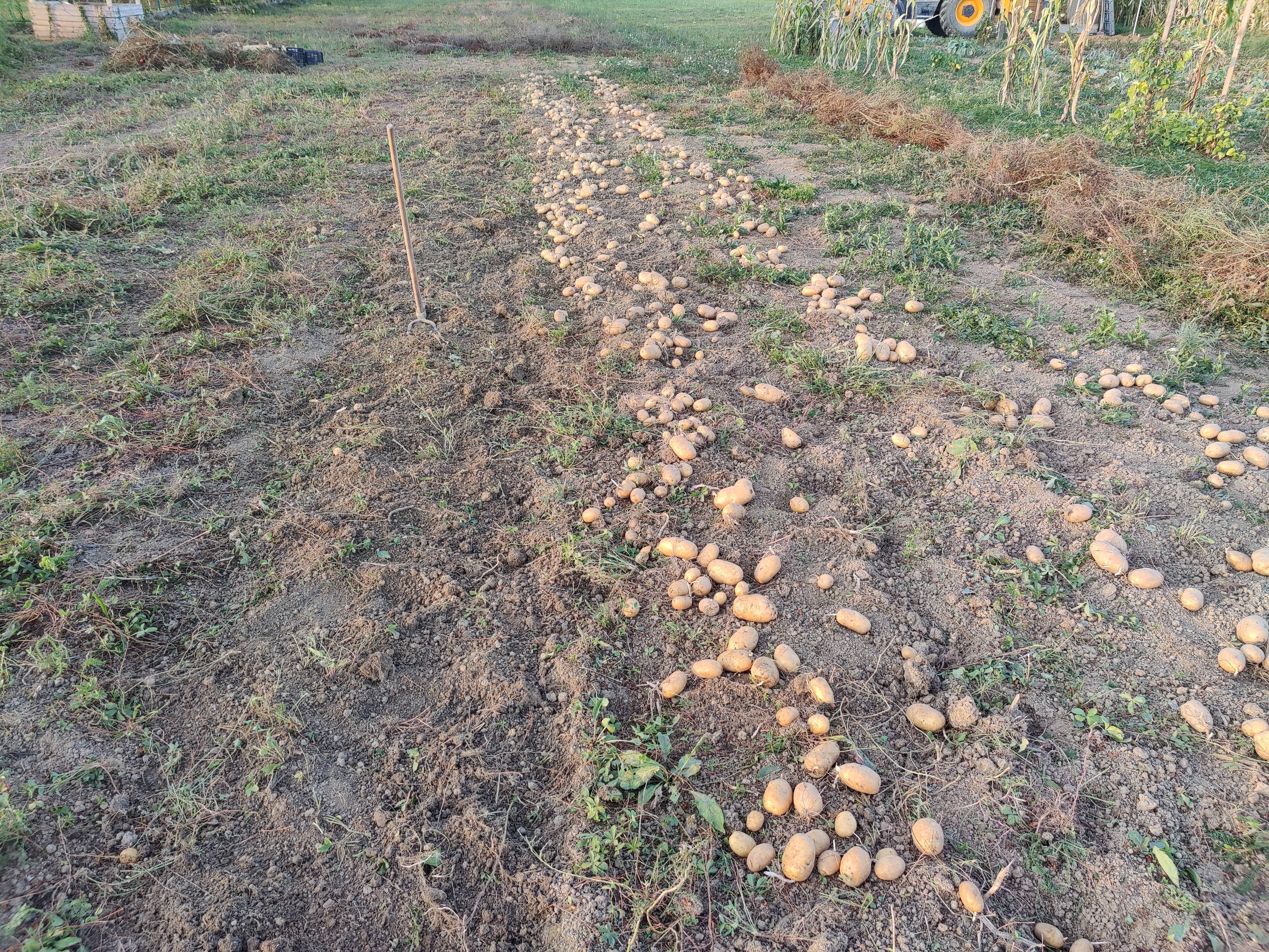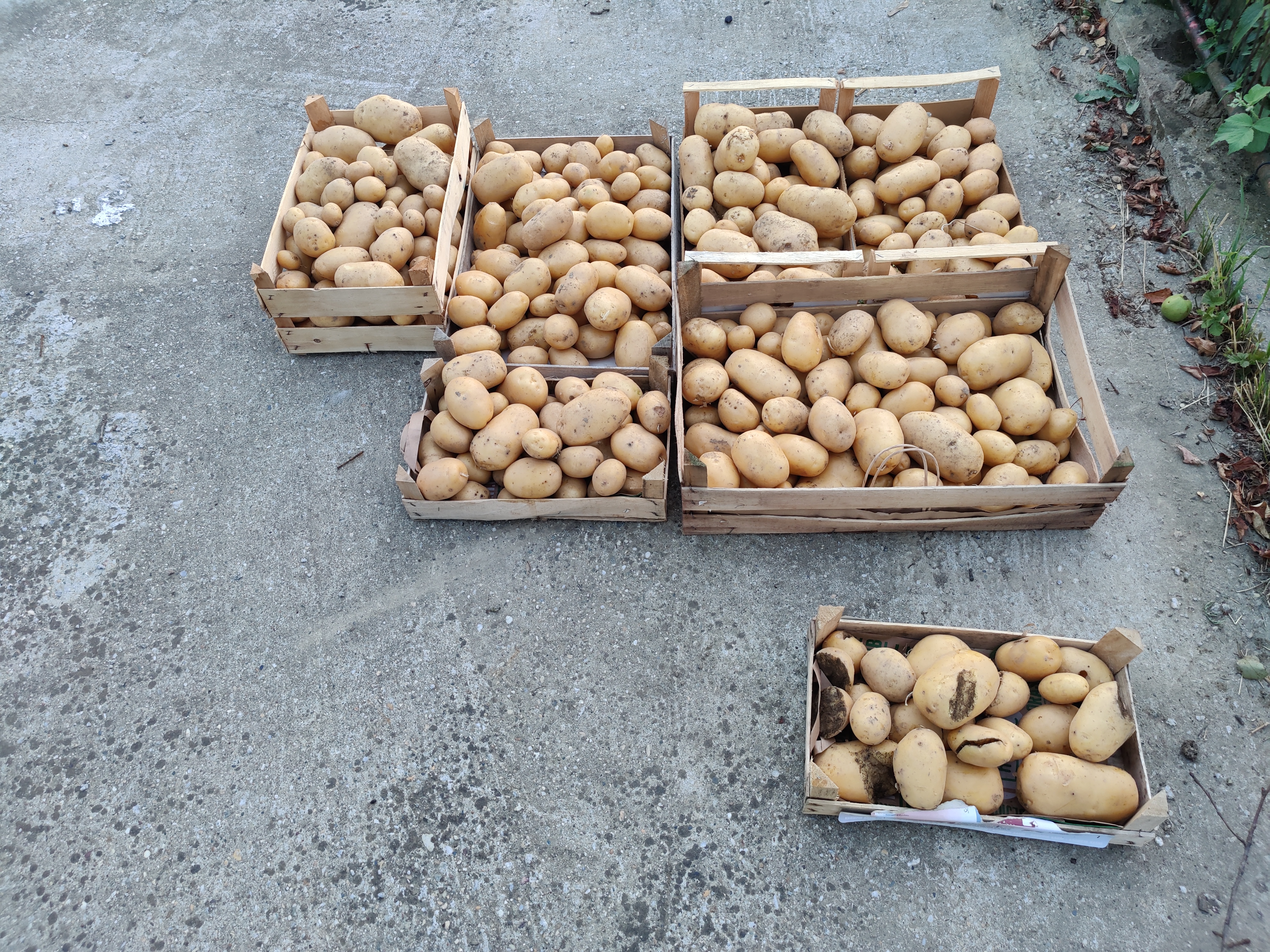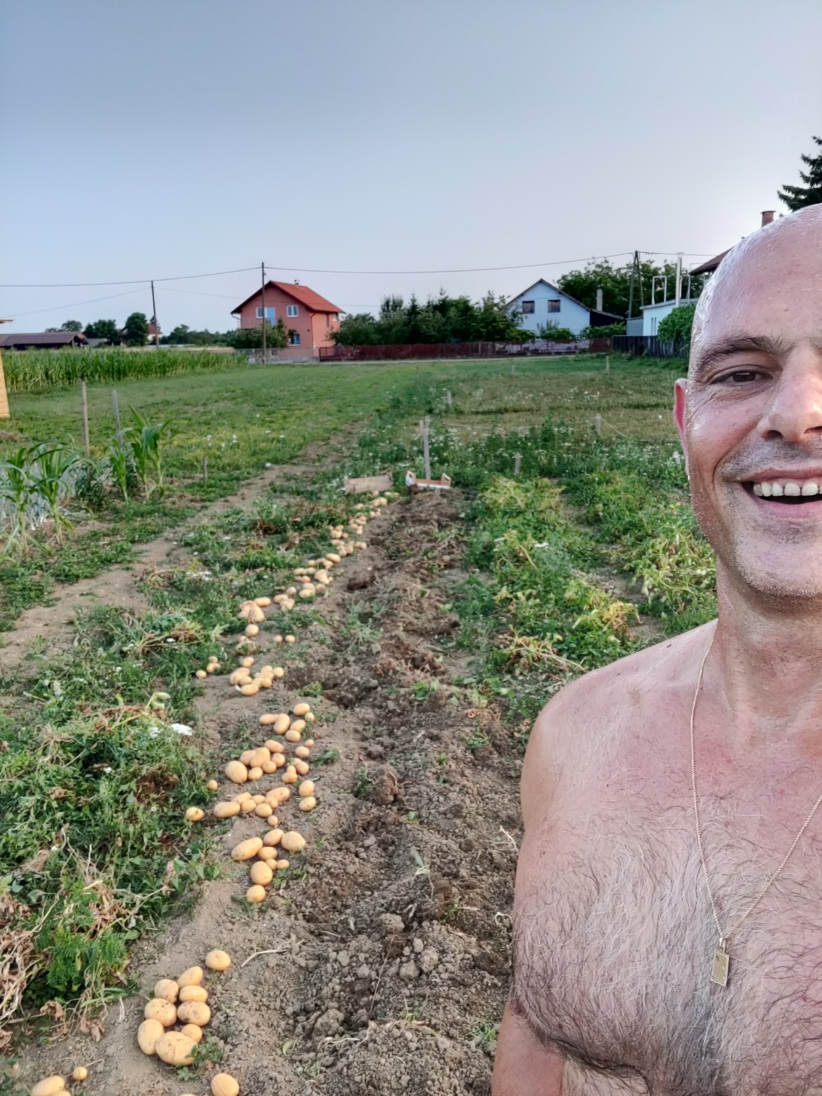 Vađenje krumpira se pokazalo kao prilično isrpljujući posao 🤣🤣🤣, tako da sam ga odradio u pet (5!) iteracija. Dogodine ćemo ih svakako vaditi strojno (ima tu susjed mašinu tako da ćemo se lako dogovoriti), da sebi olakšam … ali i da ih manje posječem i upropastim (po mojoj stručnoj procjeni zbog mog nestručnog rukovanja motikom, odnosno “rogama”, bar jedno 10% sam ih posjekao 🤣).