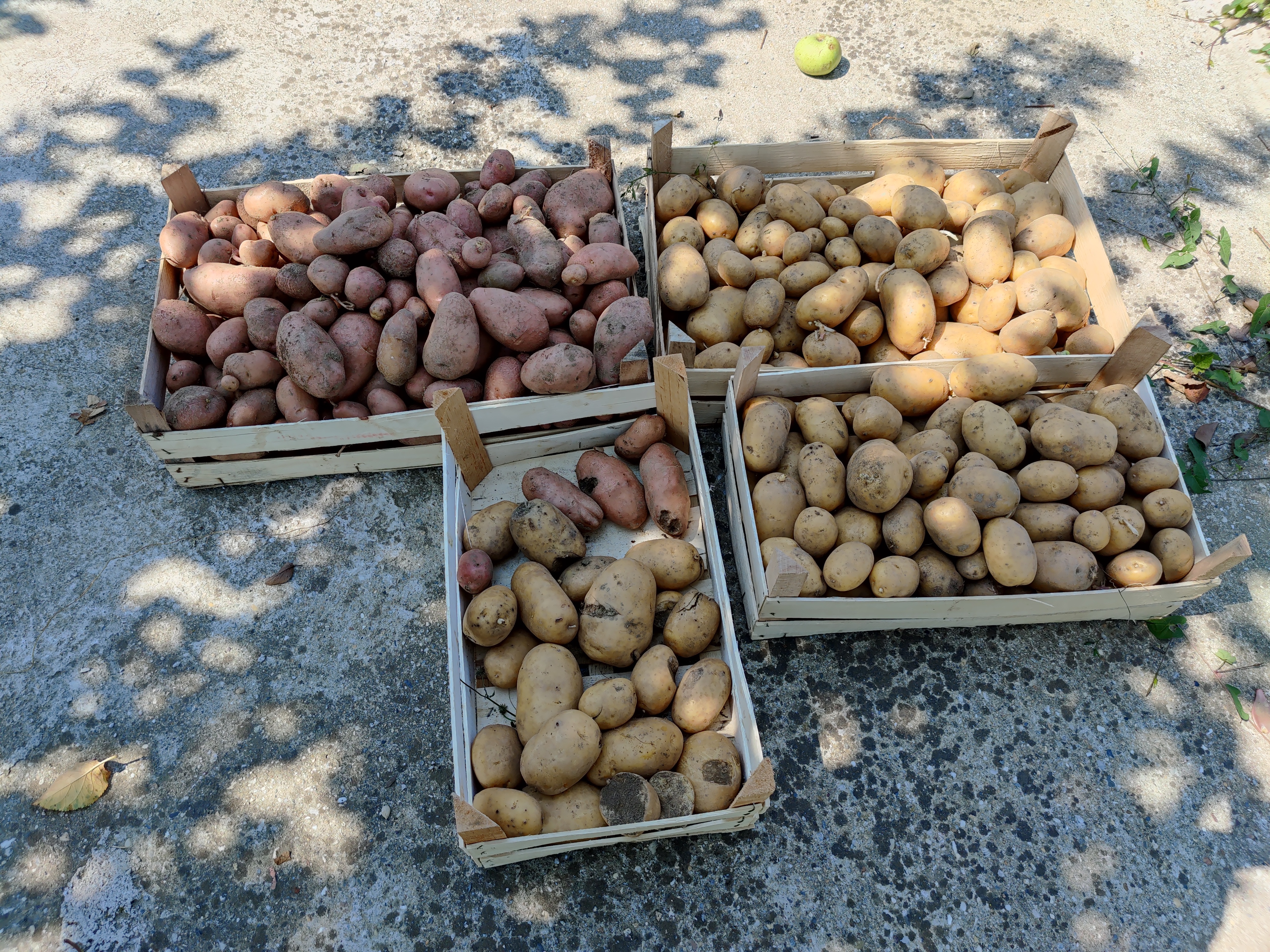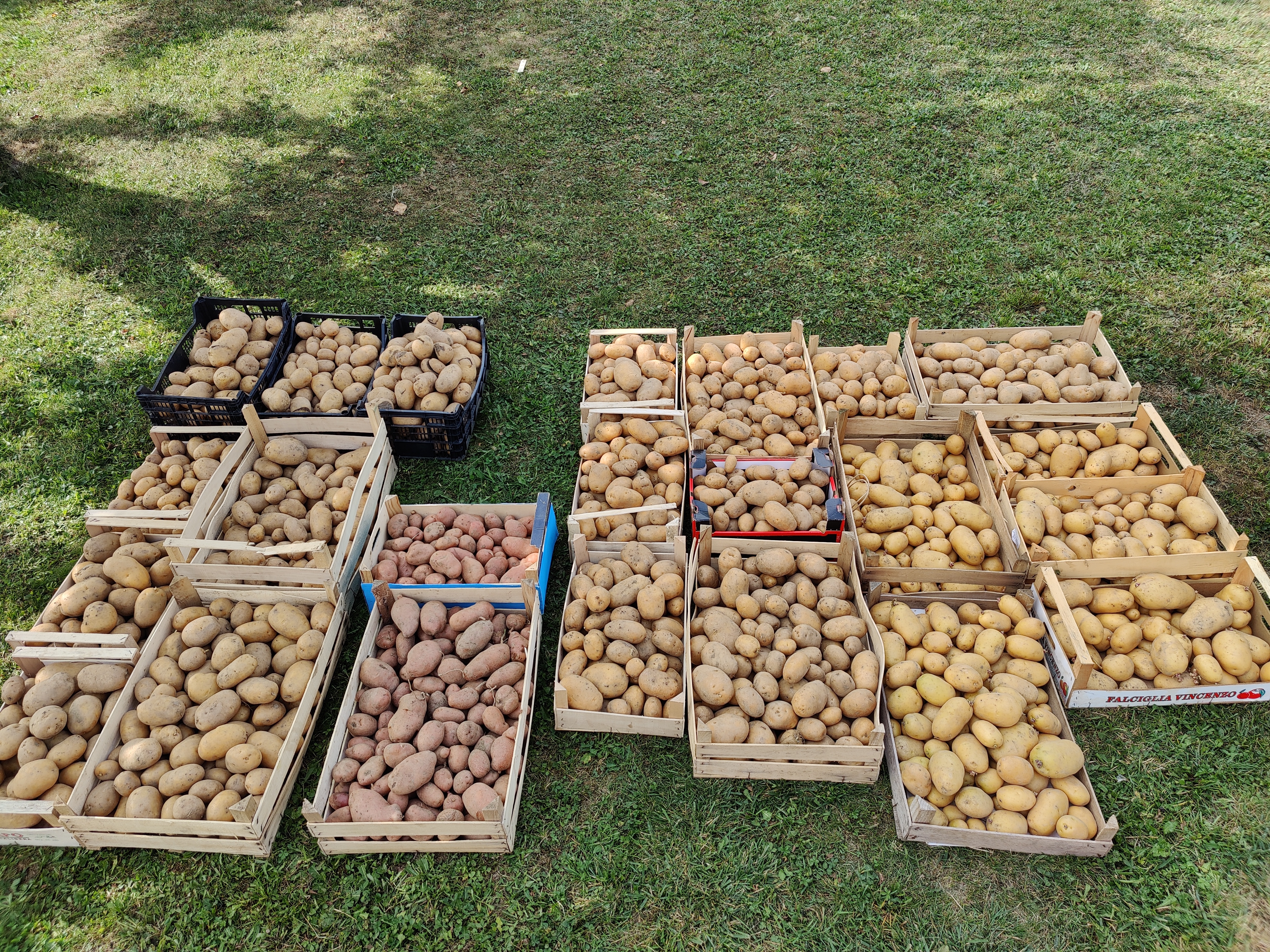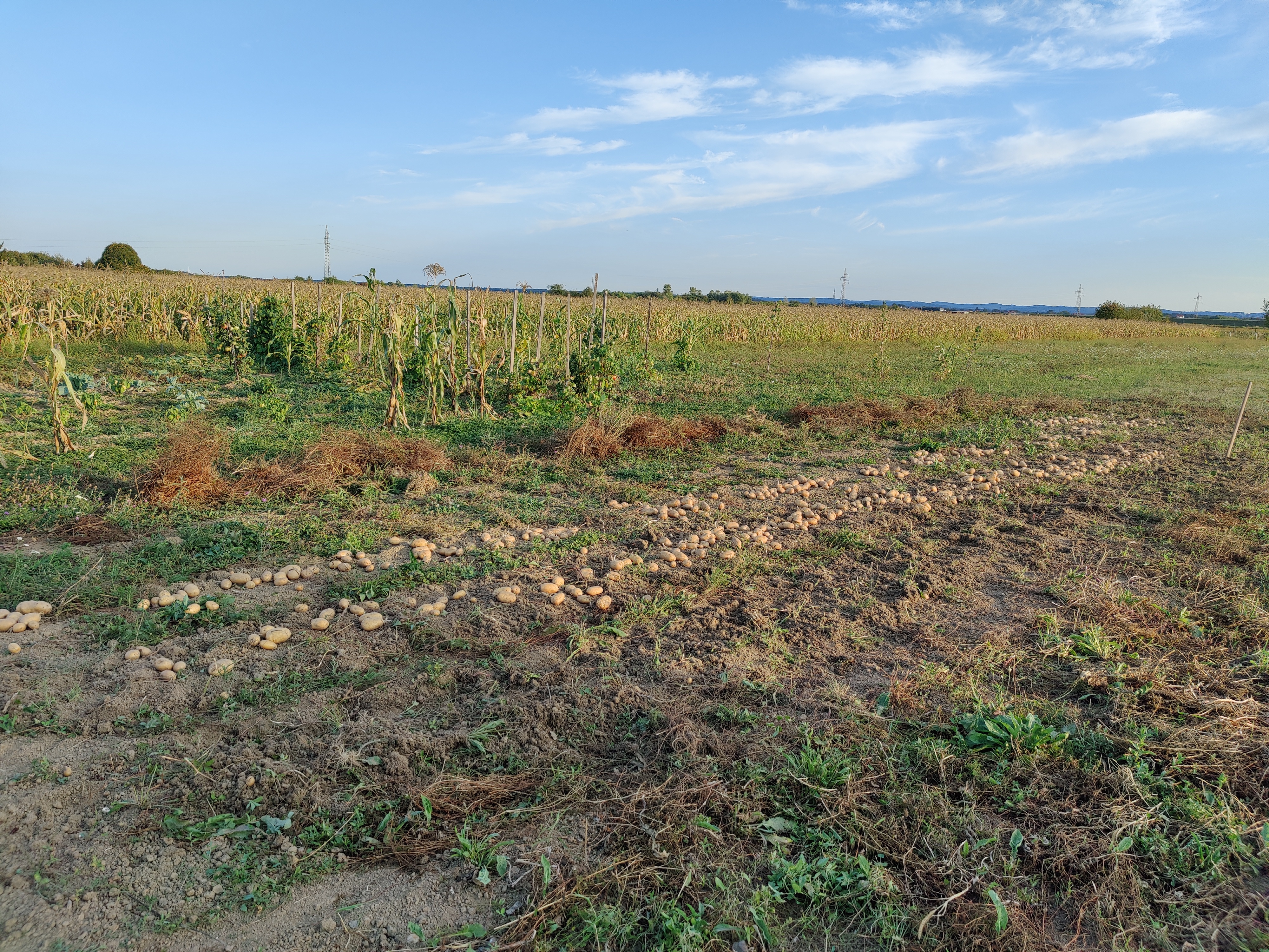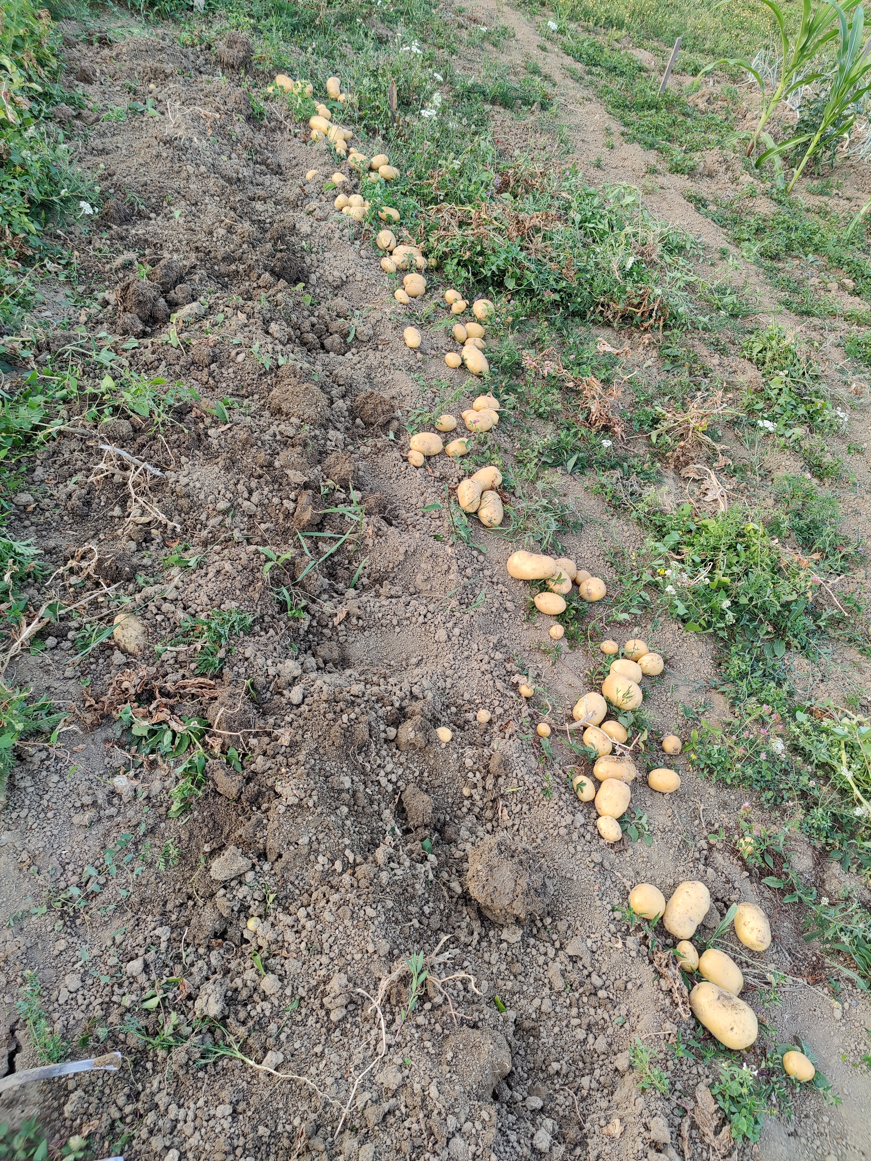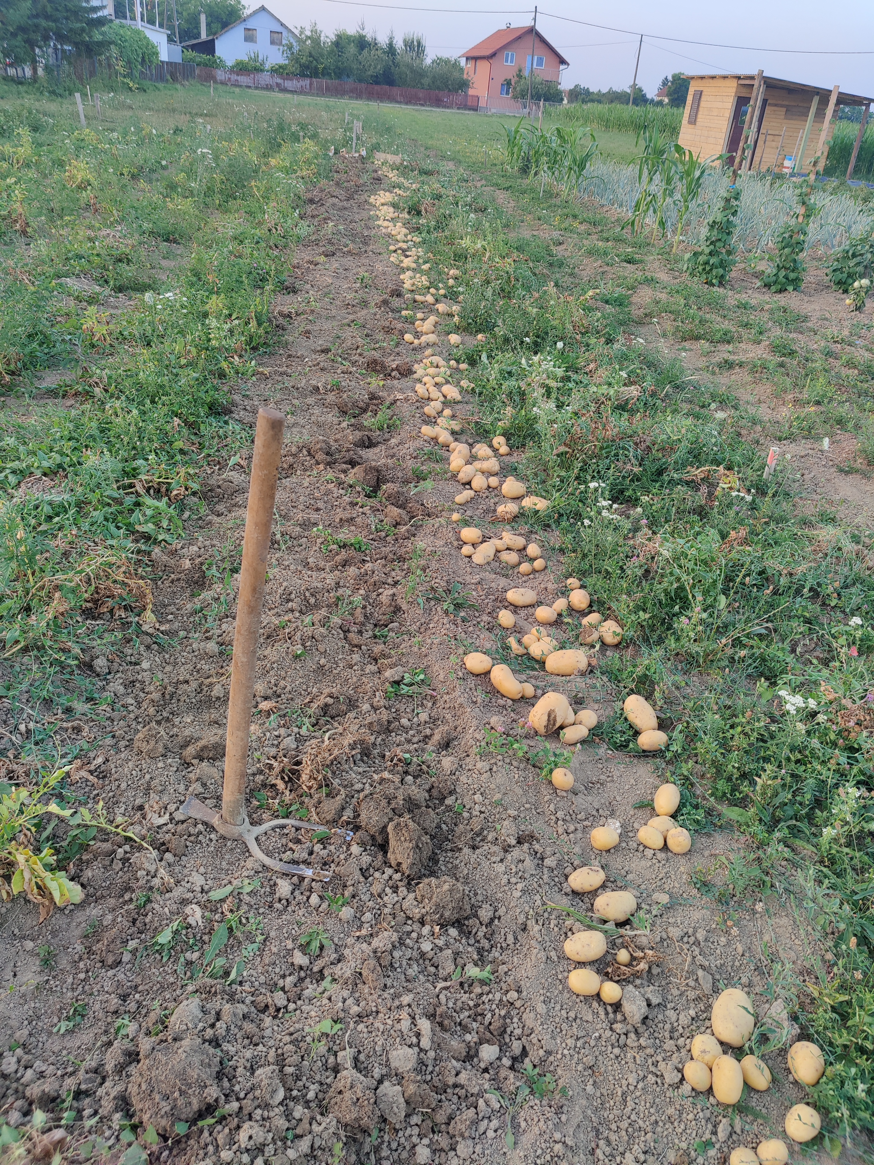 Vađenje krumpira se pokazalo kao prilično isrpljujući posao 🤣🤣🤣, tako da sam ga odradio u pet (5!) iteracija. Dogodine ćemo ih svakako vaditi strojno (ima tu susjed mašinu tako da ćemo se lako dogovoriti), da sebi olakšam … ali i da ih manje posječem i upropastim (po mojoj stručnoj procjeni zbog mog nestručnog rukovanja motikom, odnosno “rogama”, bar jedno 10% sam ih posjekao 🤣).
