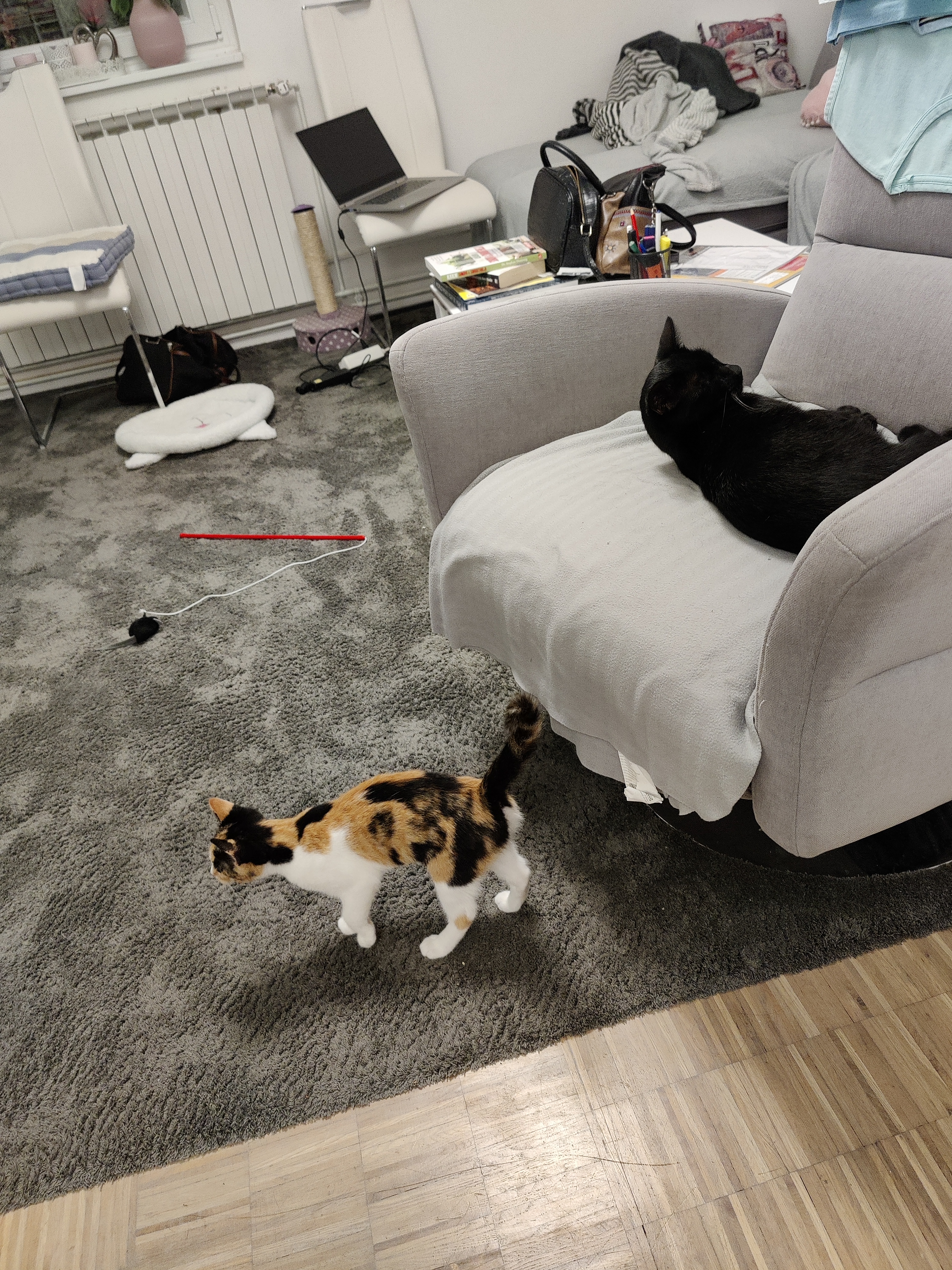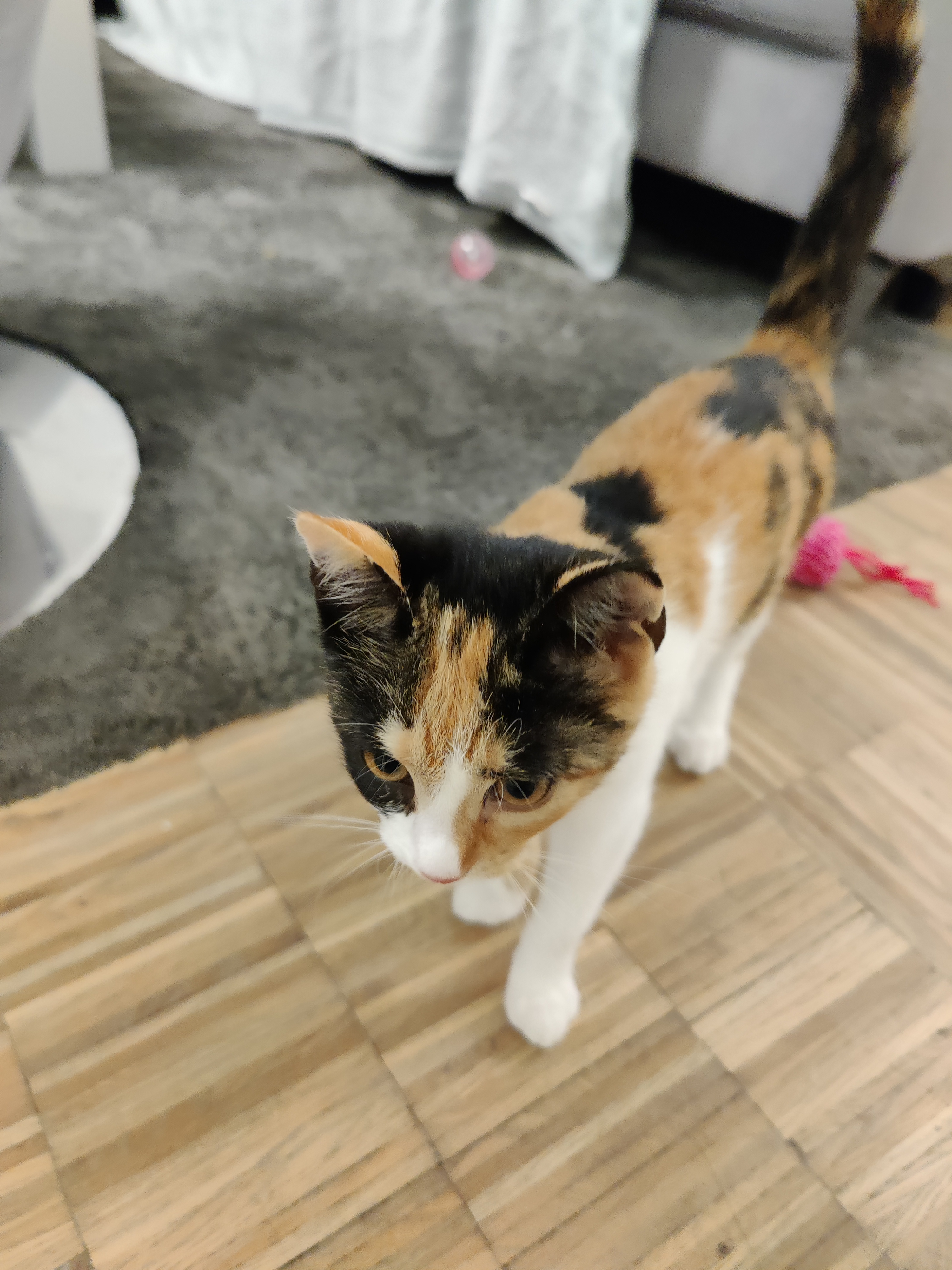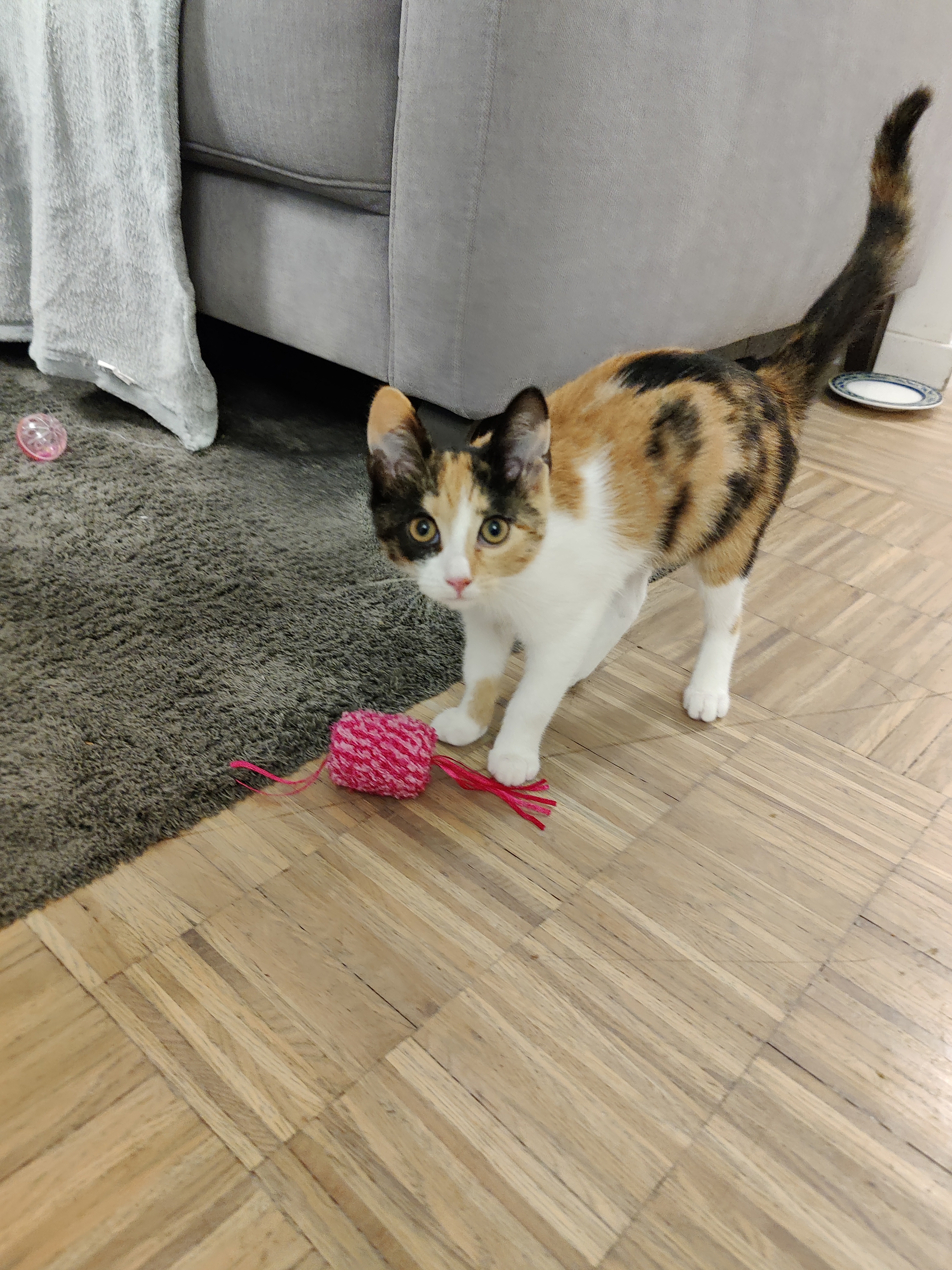 Prijatelji su je udomili kod sebe prije nekih tjedan dana, ali je ispalo da su im djeca alergična na mačju dlaku, i nije bilo druge nego proslijediti je dalje 😥. A kako smo mi sad već iskusni mačko-udomitelji ❤ (svaki dan slušam kritike od Luane da “više uopće ne voliš Flopsya, samo maziš mačka” 🤣), odmah smo se ponudili, jer … maca je prekrasna ❤❤❤.