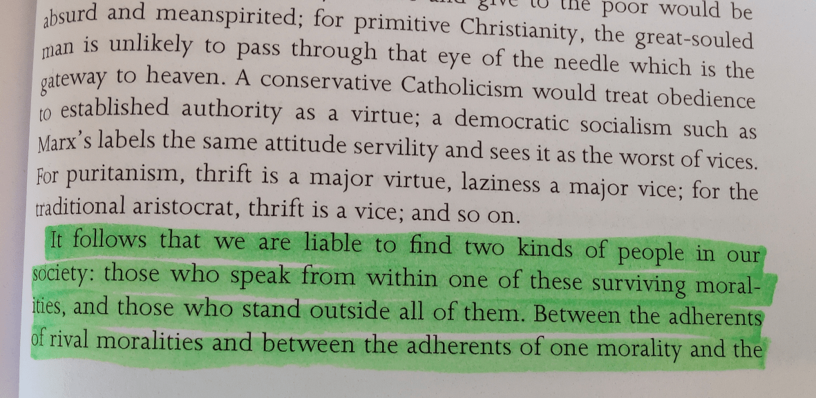 Jedna od knjiga s moje Todo liste za pročitati je obavezno i “A Short History of Ethics” od Alasdaira MacIntyrea. Već je u bliblioteci, spremna i čeka, a kad sam je, kako to uvijek radim s knjigama kad stignu ❤, malo prolistao i išao pogledati što kaže na kraju u zaključku, čistim slučajem sam naletio na sljedeći tekst: