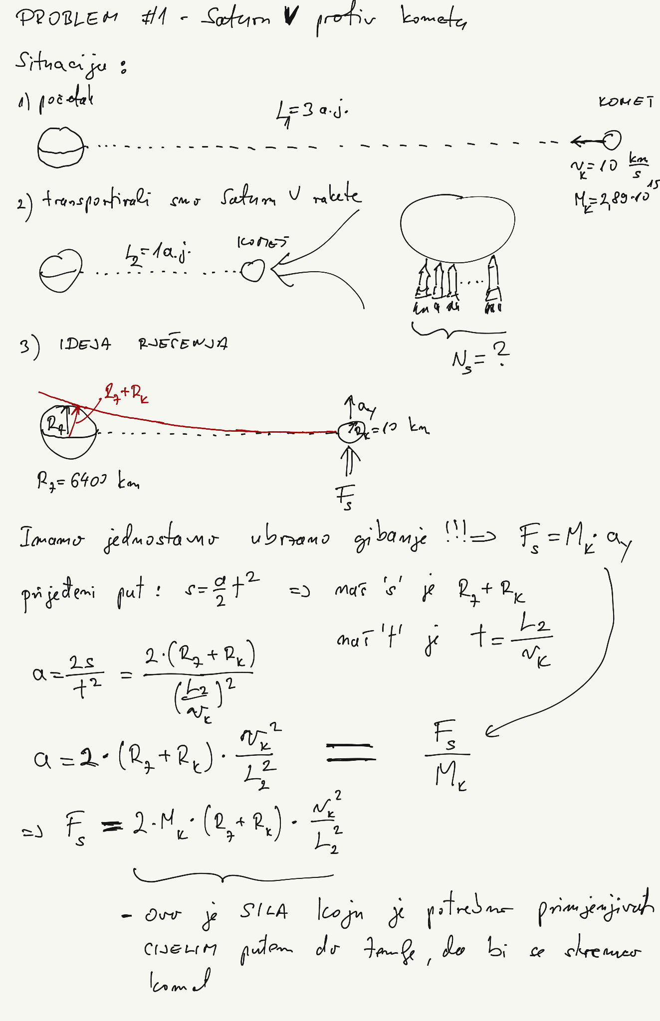 U prethodnom postu sam pingnuo cijenjeno čitateljstvo da dadne procjenu za jedan jednostavan fizikalni problem koji sam ukratko opisao ovako – koliko bi Saturn V raketa trebalo da se djelovanjem njihovog potiska komet promjera 10 kilometra skrene s putanje koja ga vodi na direktan sudar sa Zemljom?