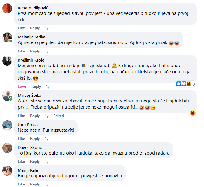 Hajduk baš nema sriće 😥 Hajduk se taman sprema postat prvak, i što će ti bit? Počne Treći svjetski rat 🤣🤣🤣. Komentari na Fejsu su zlato 🤣: Facebook link. Podjeli ovo: Klikom podijelite na Facebooku(Otvara se u novom prozoru) Facebook Click to share on X(Otvara se u novom prozoru) X Lajk Učitavanje... Srodno Sport