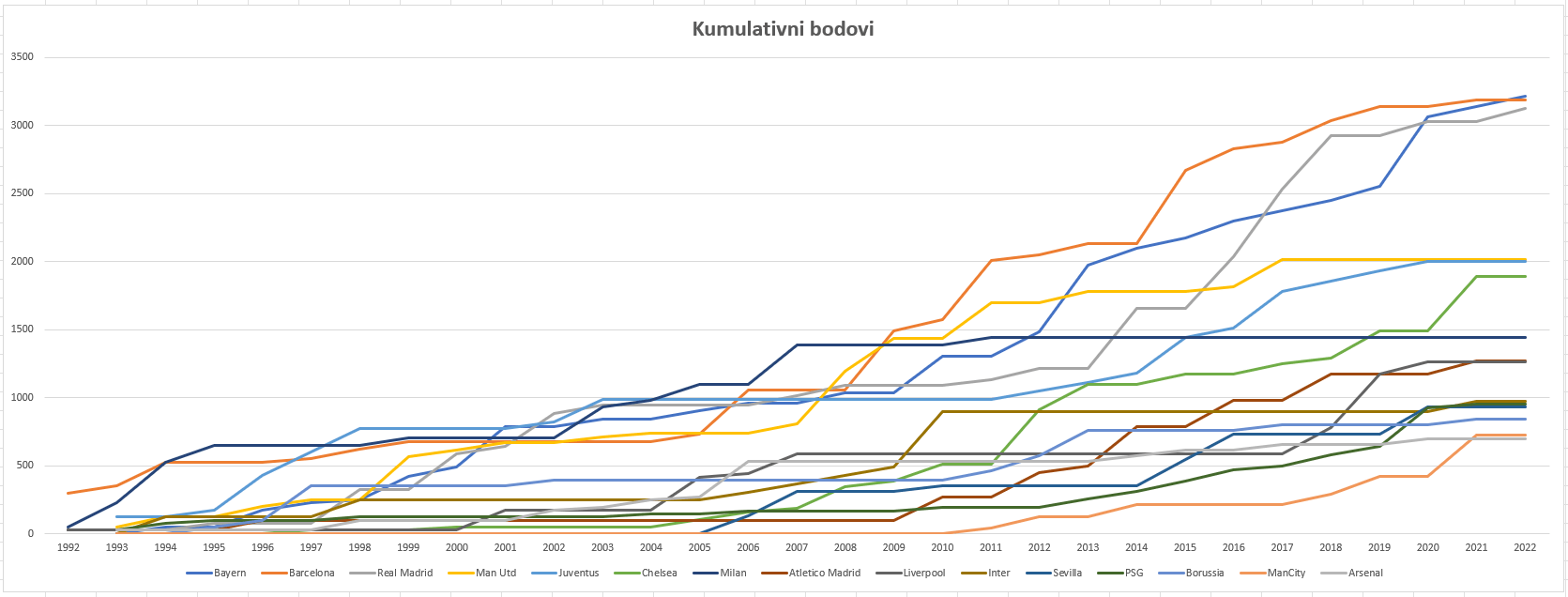 Doduše, zanimljivo je pogledati i grafički prikaz kumulativnih bodova kroz vrijeme: