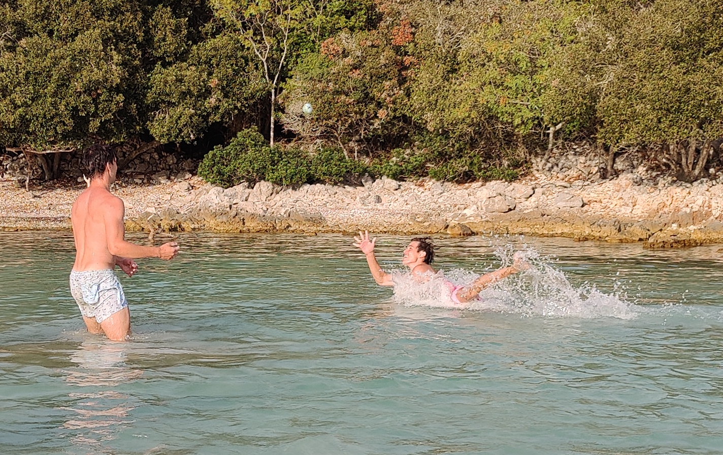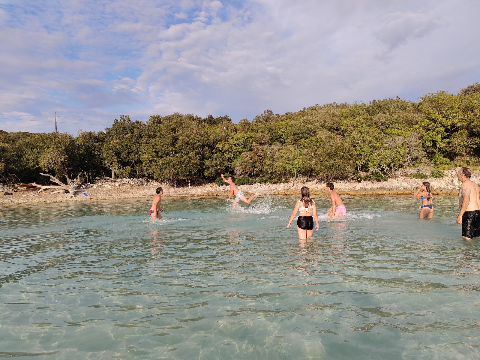 U 9 su bili nazad na rivi (Luana je bila priiiizadovoljna što se uspjela dignuti na skije iz trećeg pokušaja i malo odskijati) gdje smo im se pridružili Toni i ja, i uputili se put Južnog porta, u uvali Sv. Ante.