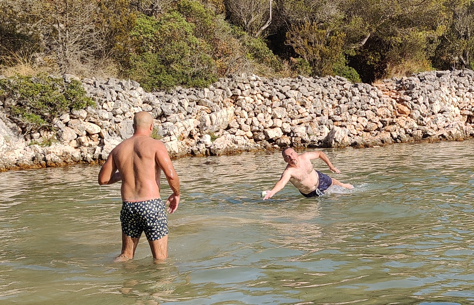 Odigrali smo tri runde, u prvoj se još zagrijavao i hvatao zamah, ali kako je picigin odmicao i on sve više postizao radnu temperaturu i namještao nišanske sprave … koja je to milina bila igrati. Baciš mu livo, baciš mu desno, baciš mu u sredinu … sve stiže. Ore po onom moru ka tenk, napravi tri četiri koraka prije bacanja (a ovo nisu splitske Bačvice ili nama poznati Barotul di je dubina mora 10-15 cm, ovdje je bilo 30-40 cm!), i evo je … stiga je!