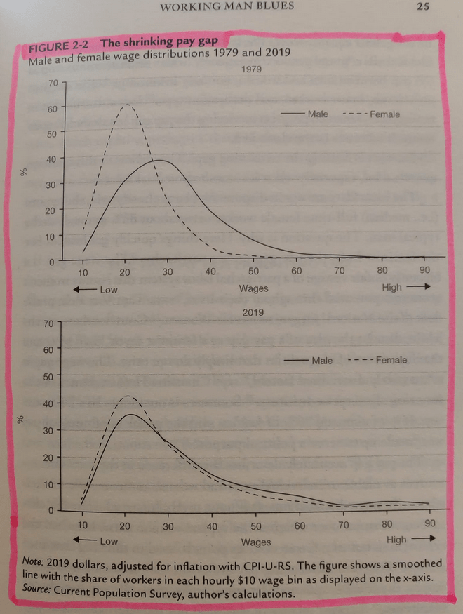 Znao sam da ženama ide sve bolje, a da su muškarci sve više u banani (zato sam i kupio knjigu), al’ me je ovaj donji graf ipak masivno (i ugodno