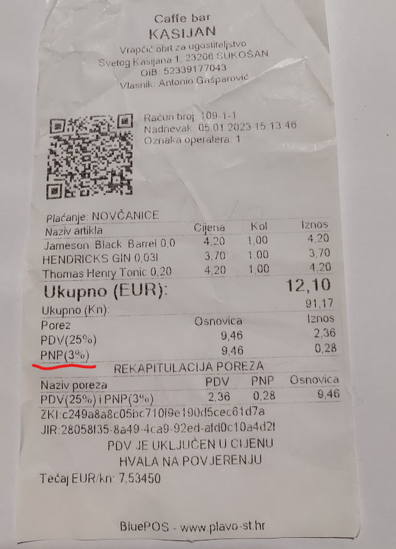 Jedina je misterija kako sam ja u ne znam koliko godina posjećivanja raznih ugostiteljskih objekata u Sukošanu uspio ne uočiti taj detalj na računu … ali kad bolje razmislim, ni to nije misterija.