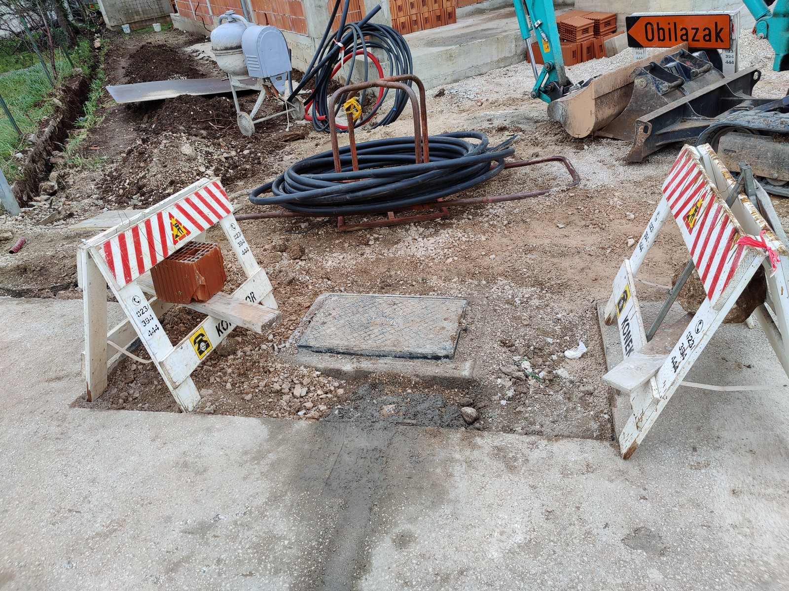 Čim sam u petak došao u Sukošan, odmah sam ulazeći na kućni put vidio da se nešto kopa. Kvadratna rupa metar sa metar, Konektorova tabla, točno isprid Lakijeve nove kuće, sve lipo označeno. Ja za večerom pitam staroga o čemu se radi, a on mi kaže da ne zna ali da vjerojatno za Lakija provode struju.