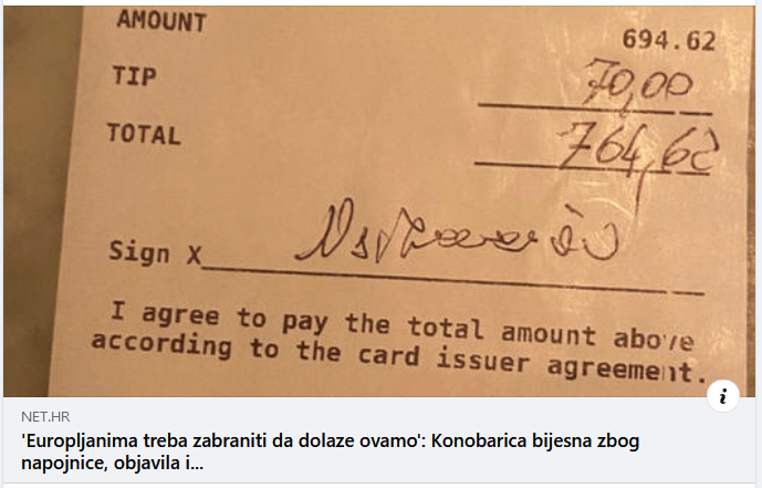 Što reći o gubavim američkim eksploatatorima radnika u ugostiteljstvu koji radnicima jedva da daju plaću, i puštaju ih da se trgaju za napojnice!? “Sve što se zaradi u restoranu MOJE, a ti vidi s gostima koliko će ti platiti”? ![]()