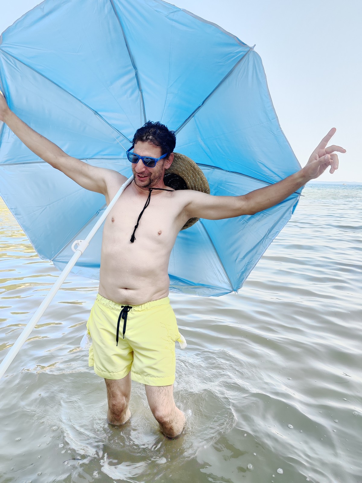 U pauzi između dva picigina, Lučo je pomaknuo istraživačke granice aero i hidro dinamike istražujući korelaciju između refula juga, površine i kuta suncobrana i vjerojatnosti spoticanja i padanja u more … bilo je za dlaku.