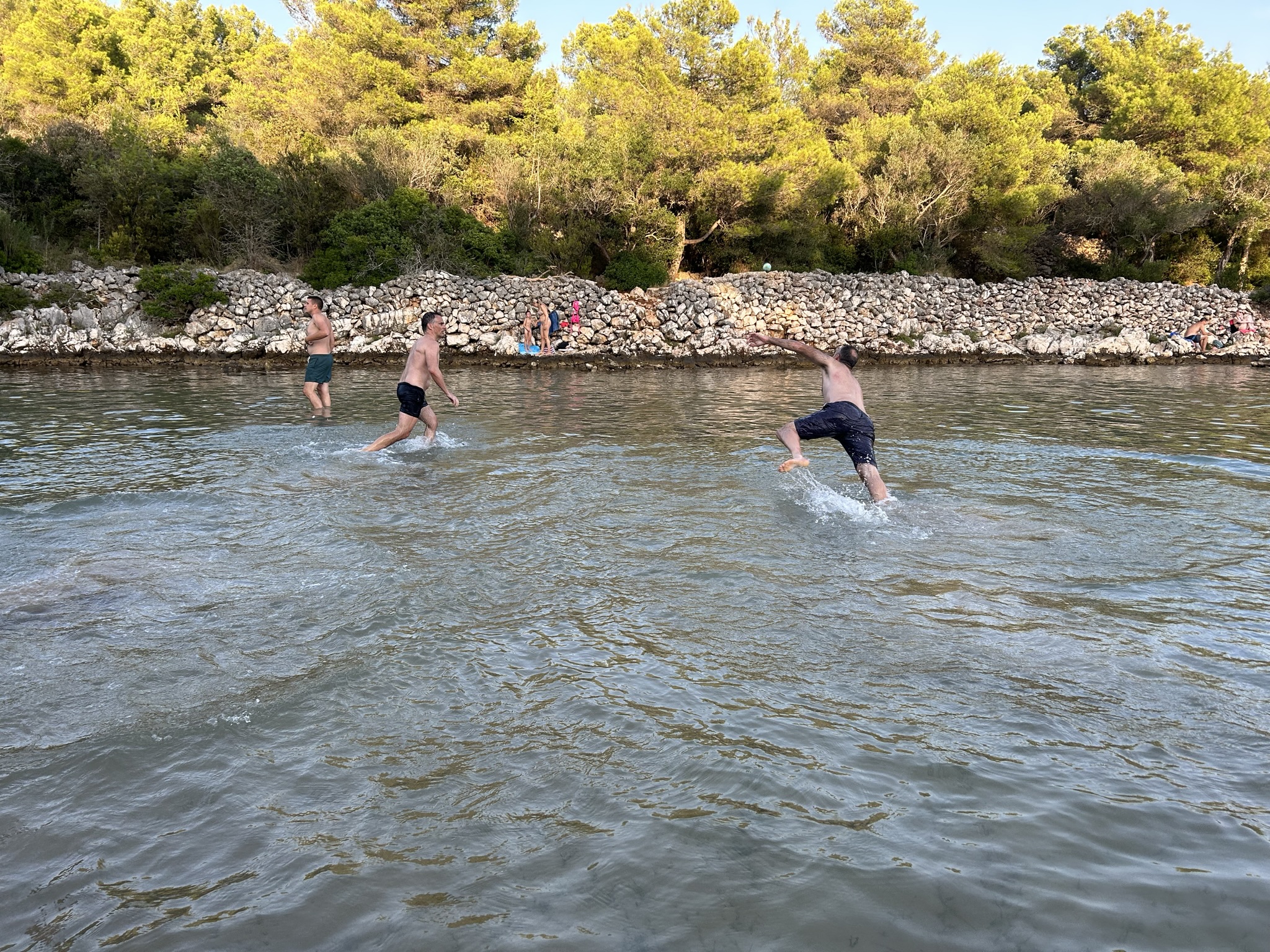 Vrend ipak nije zaboravija slikati 🤗. Ili se, kako on kaže, možda radi o tome da sam ja tek danas počeja skakati kako triba 🤣. Što bi bilo čudno, s obzirom da sam na picigin pošao s upaljenim grlom i laganom prehladom … ali, “malo sunca i mora će mi dobro doći” 🤣🤣🤣.