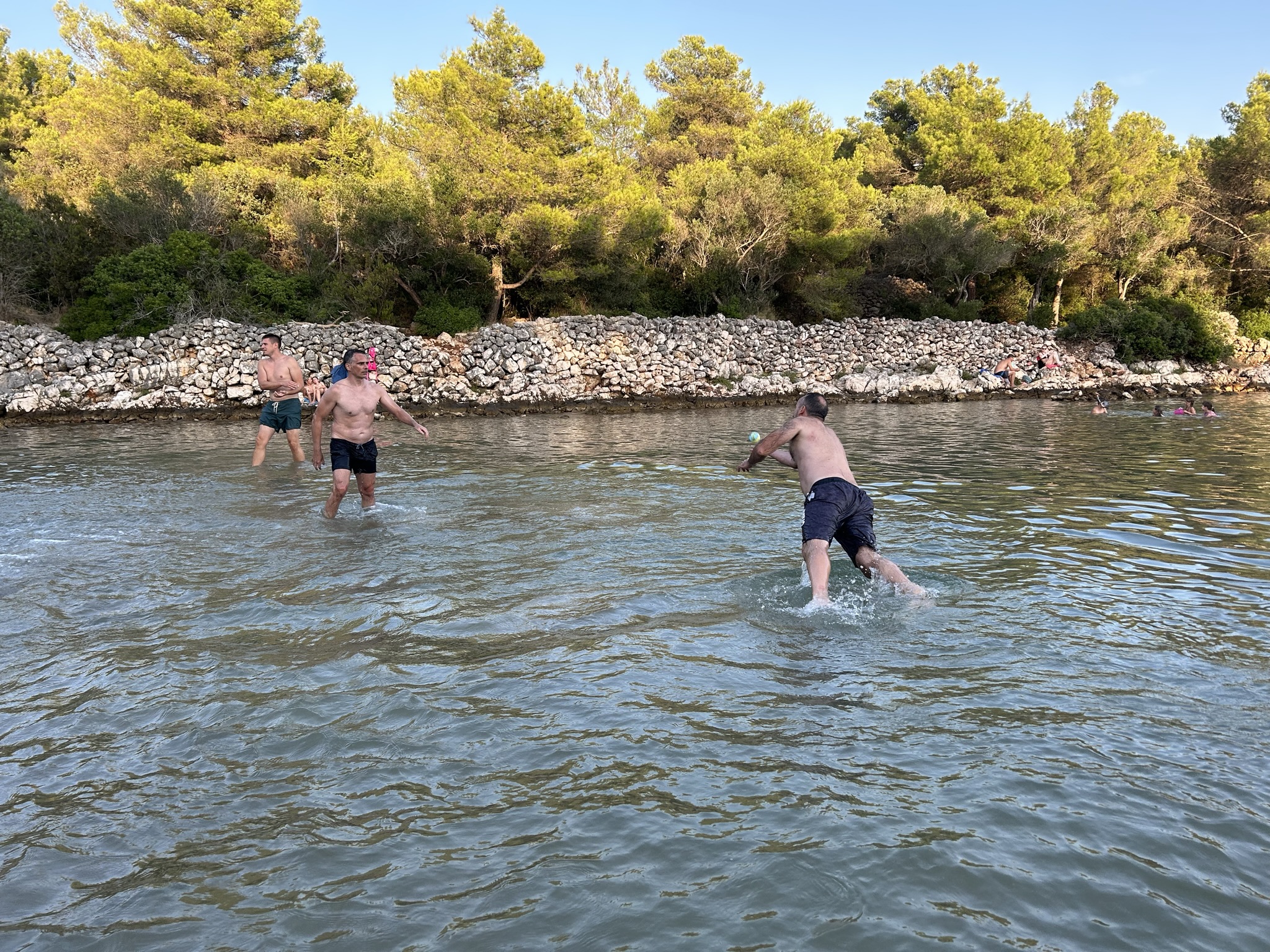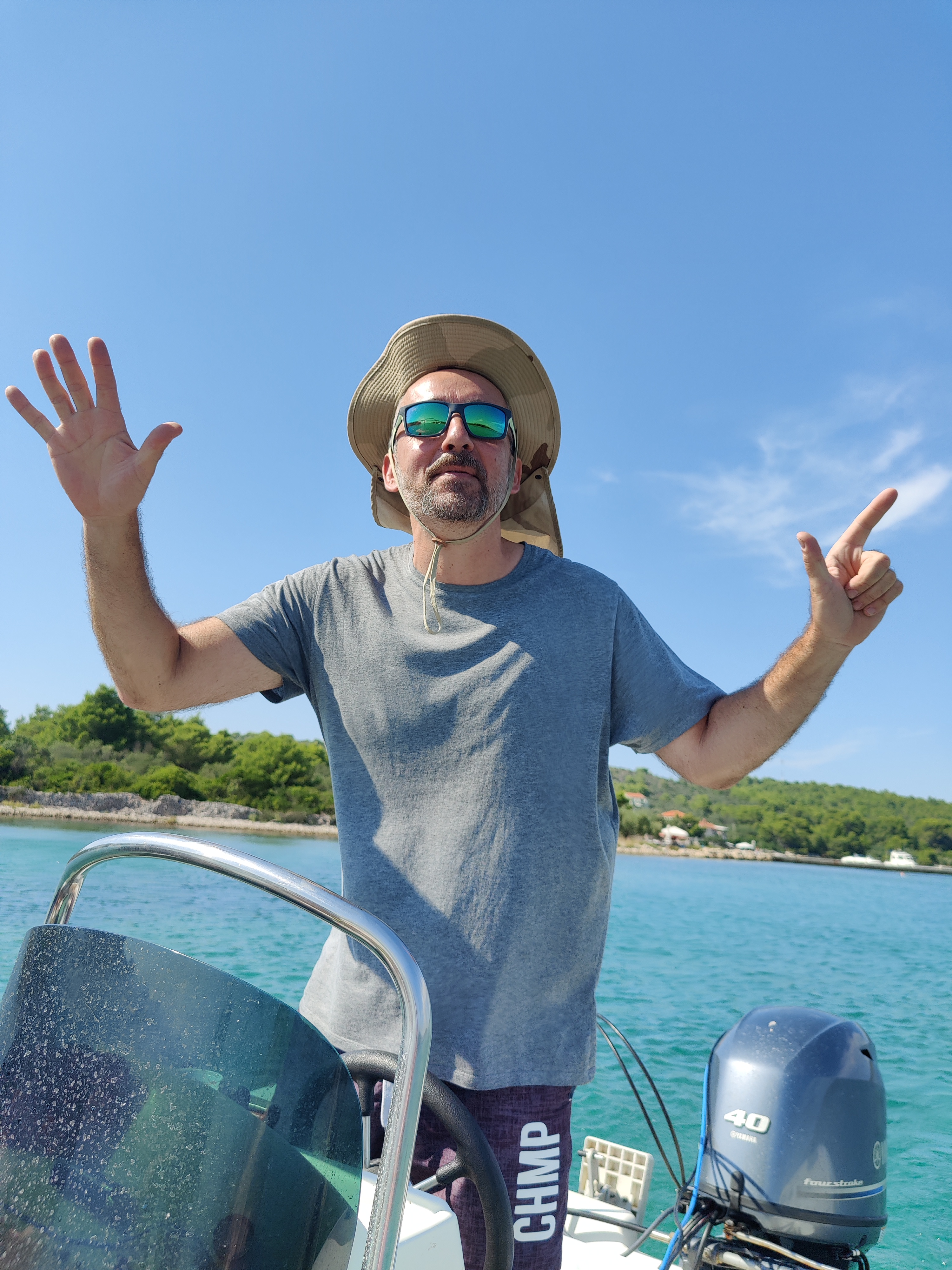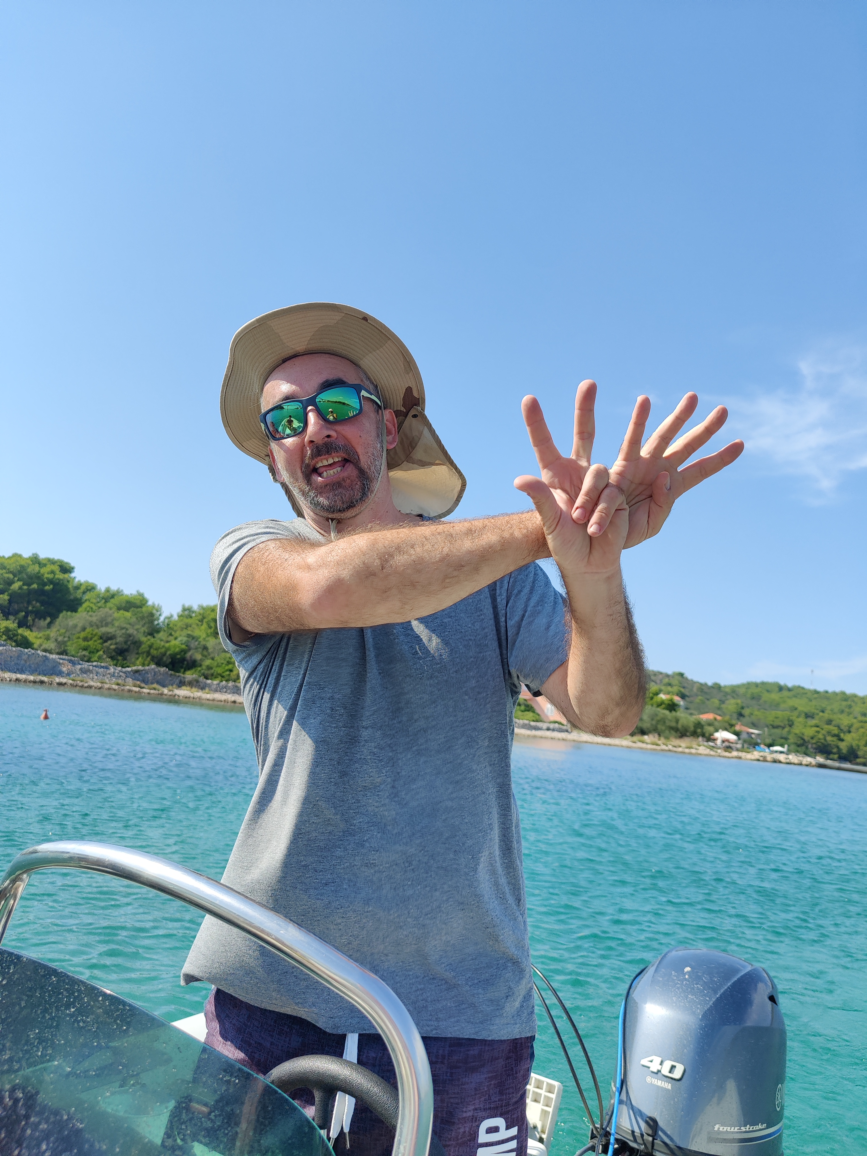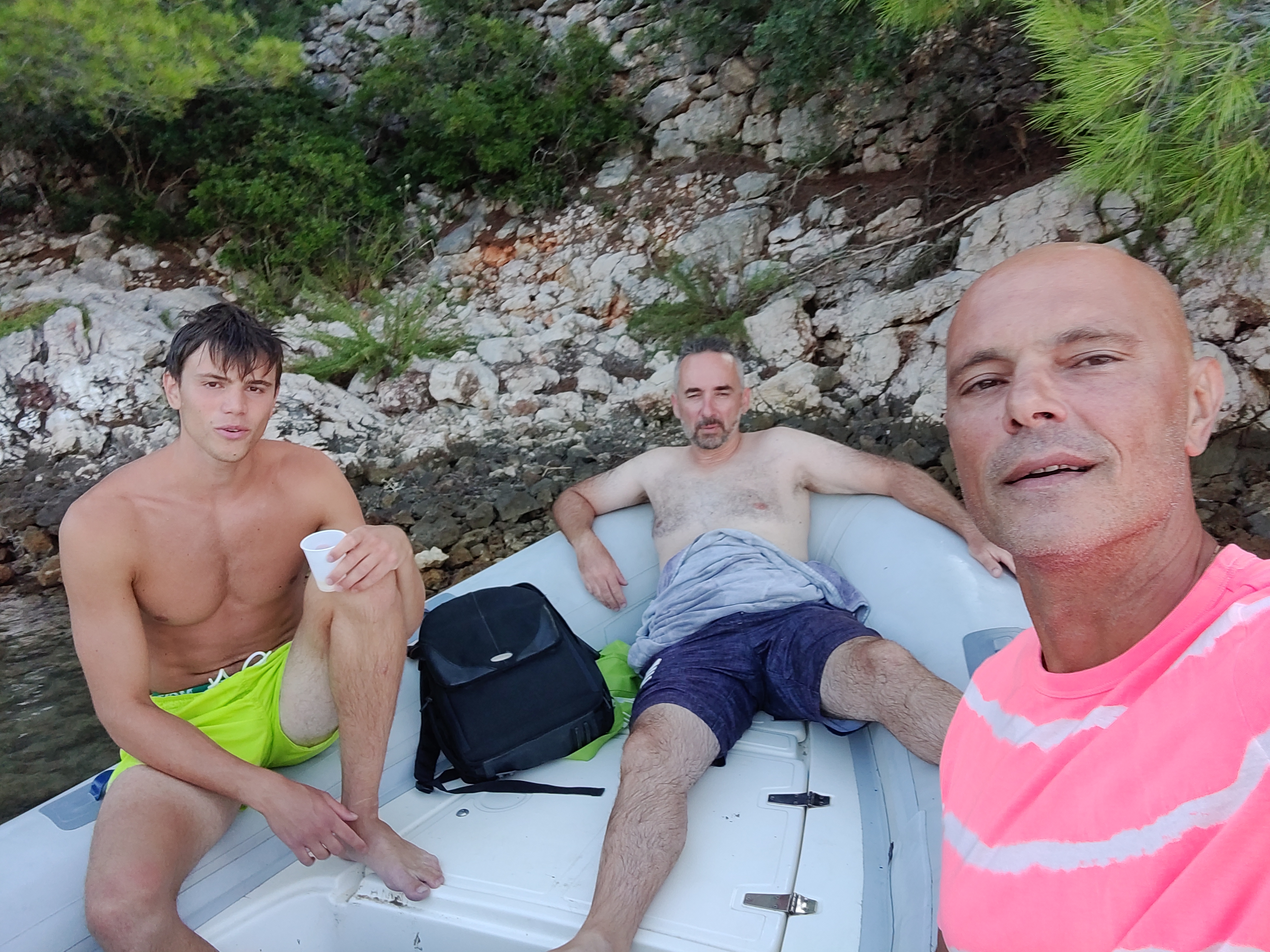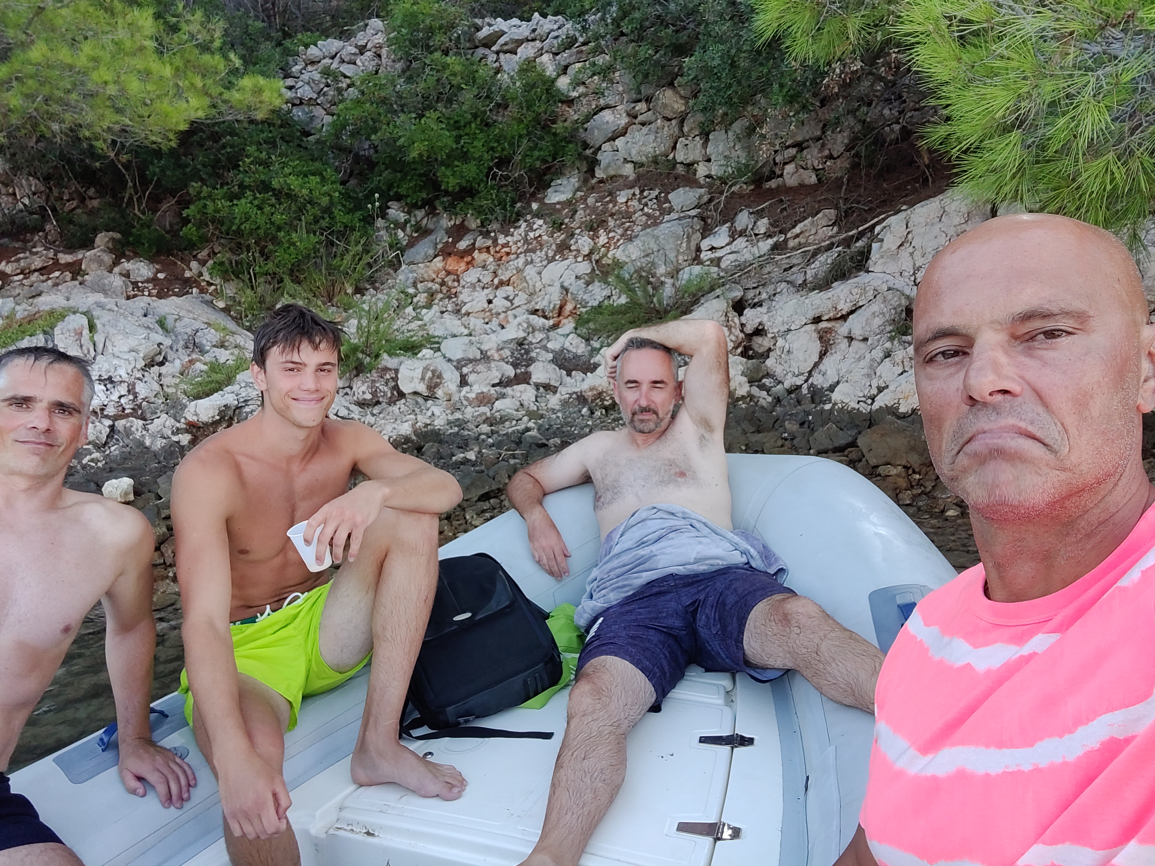 A što reći … prvi nam je uletija Roko (čija nas je supruga Tanja malo gledala popriko dok smo polako gliser uvlačili u uvalu … ali to smo posli izgladili s gin tonicom 🤗), kojem smo, nakon što je proveo šest dana na gliseru sa suprugom, još jednim bračnim parom i petero dice (!! 💪) došli kao ka’ naručeni.