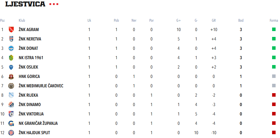 Tablica nakon prvog kola: