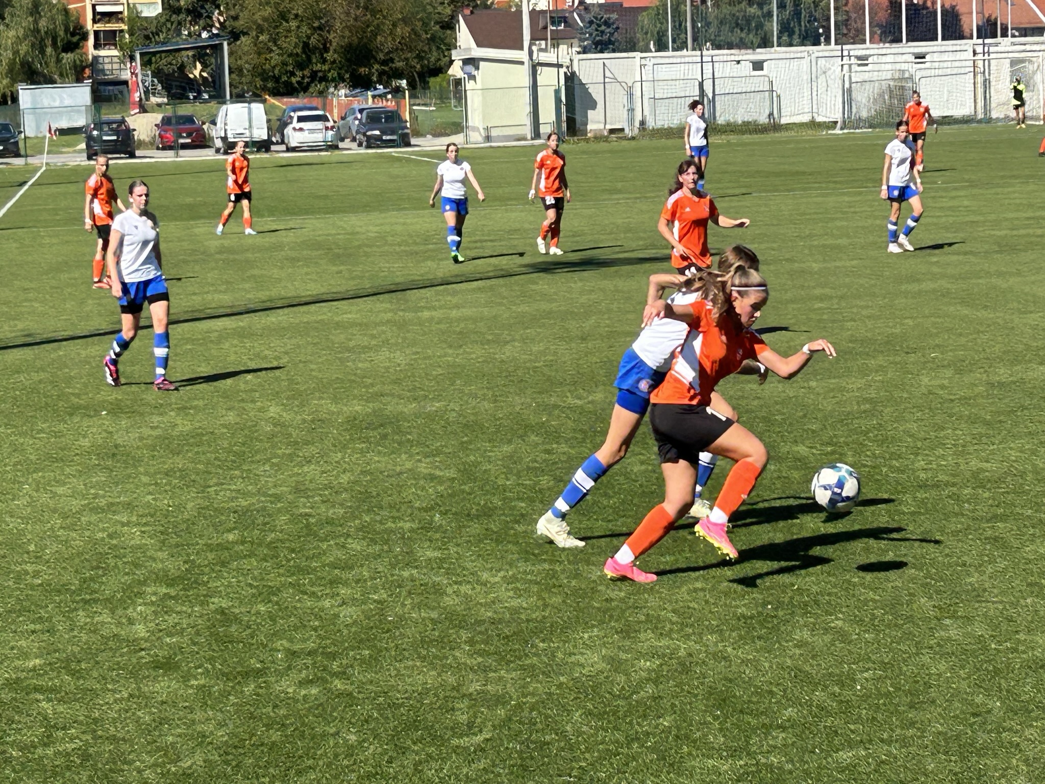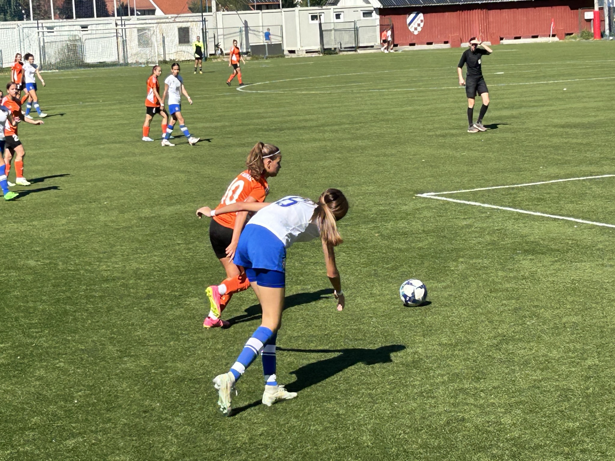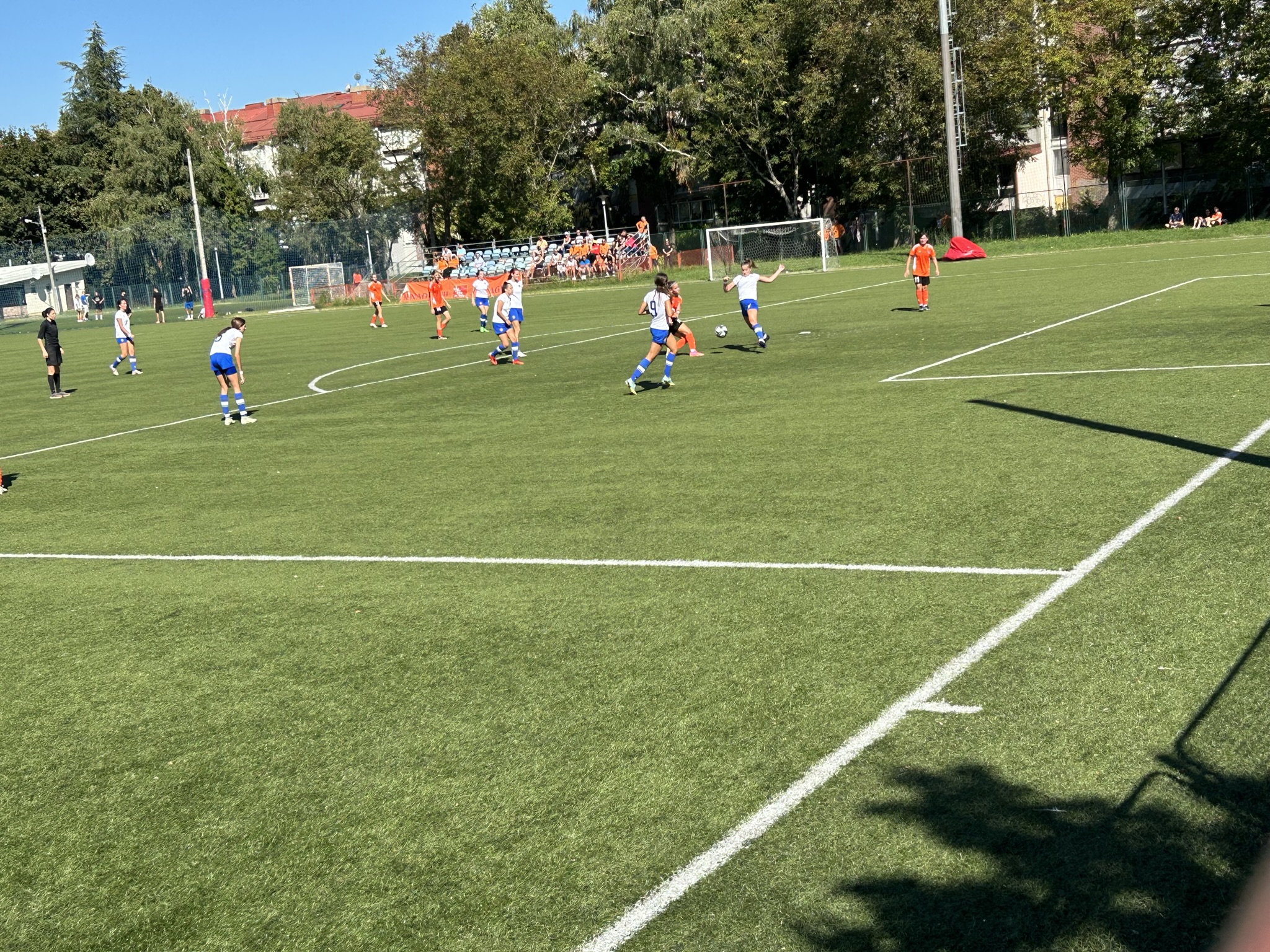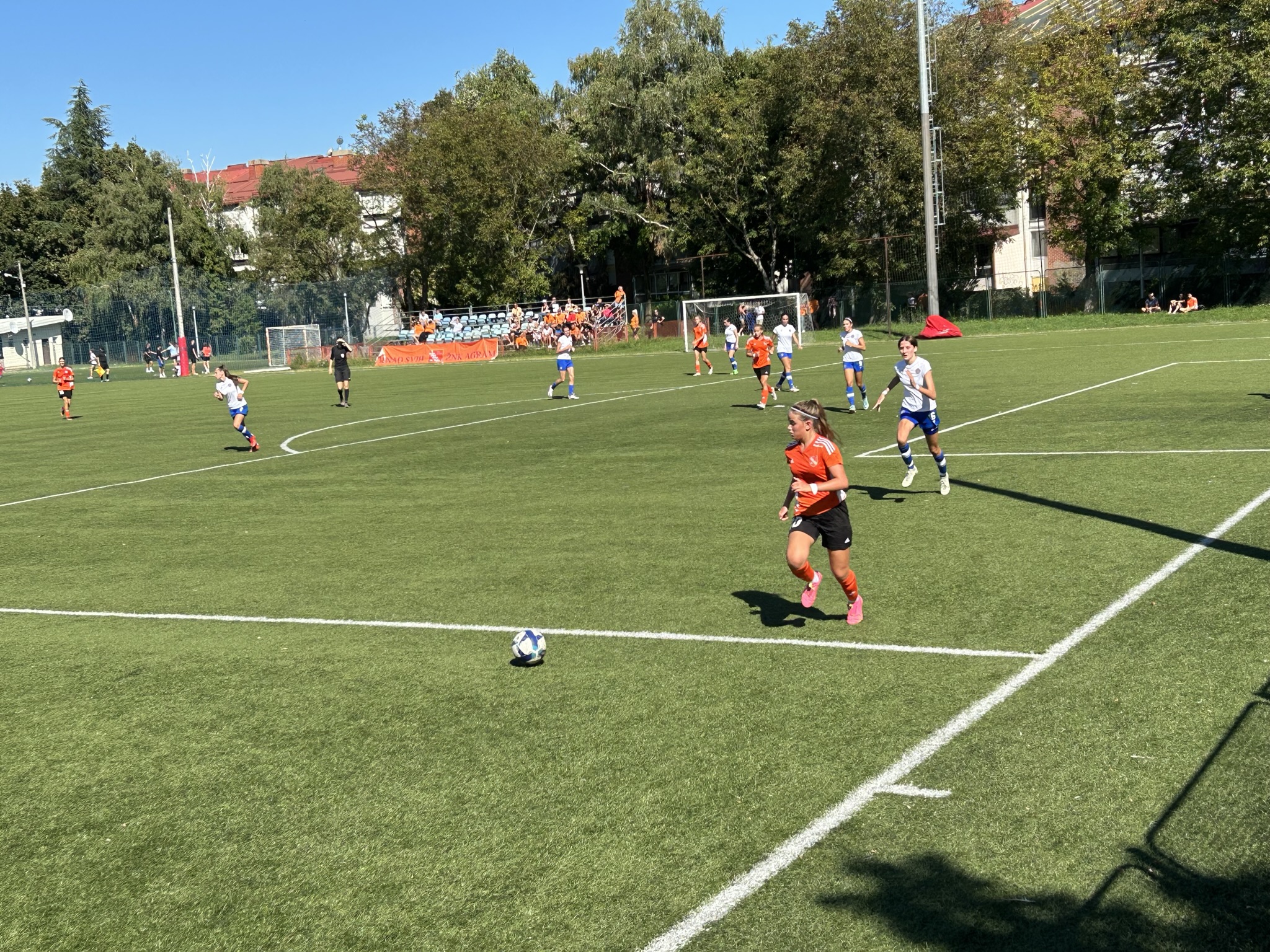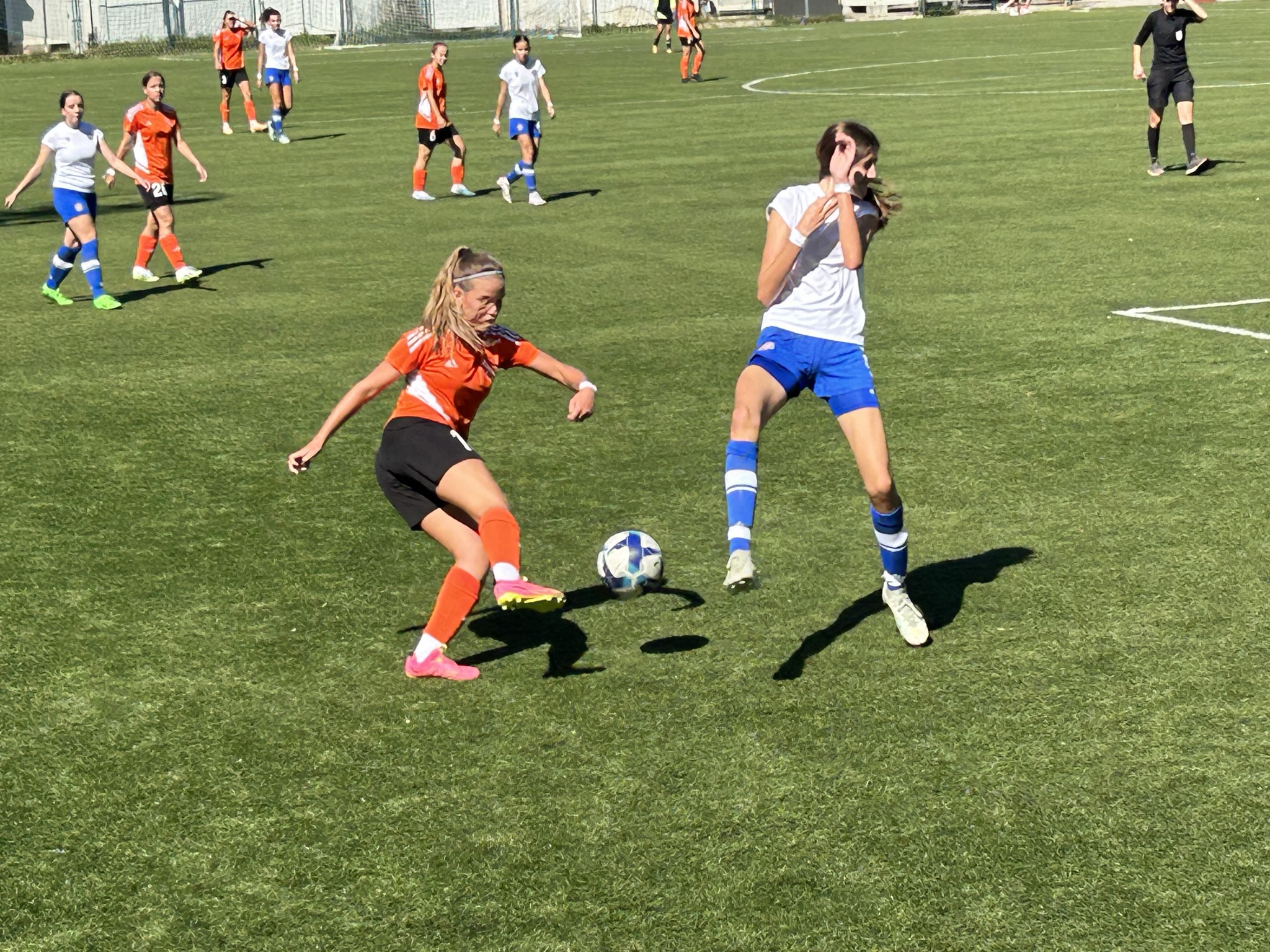 Hajduk se dobro držao prvih 10ak minuta, i u stvari su imali prvu odličnu šansu na utakmici, ali je njihova napadačica pucala ravno u golmanicu 😅. Kako to obično u nogometu biva, kazna je stigla pet minuta kasnije kad je Luana izvrsno asistirala Mariji bacivši joj savršenu loptu u for, Mare se ko vitar sjurila prema golu … i to je bilo 1 : 0.