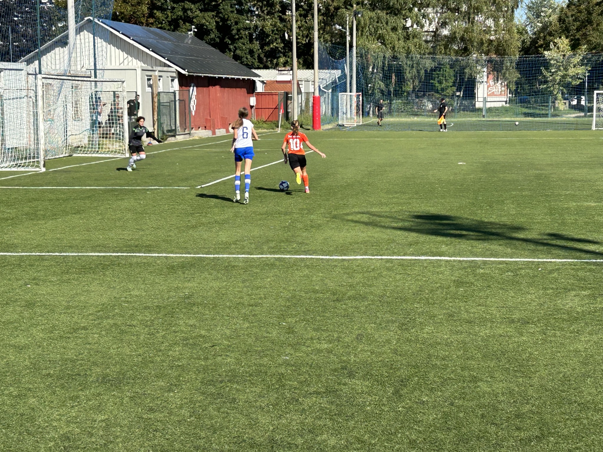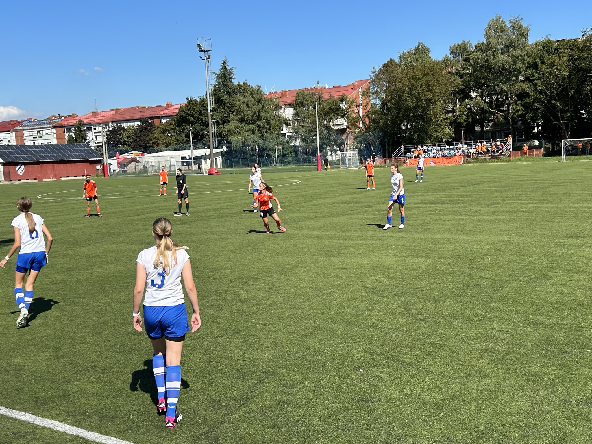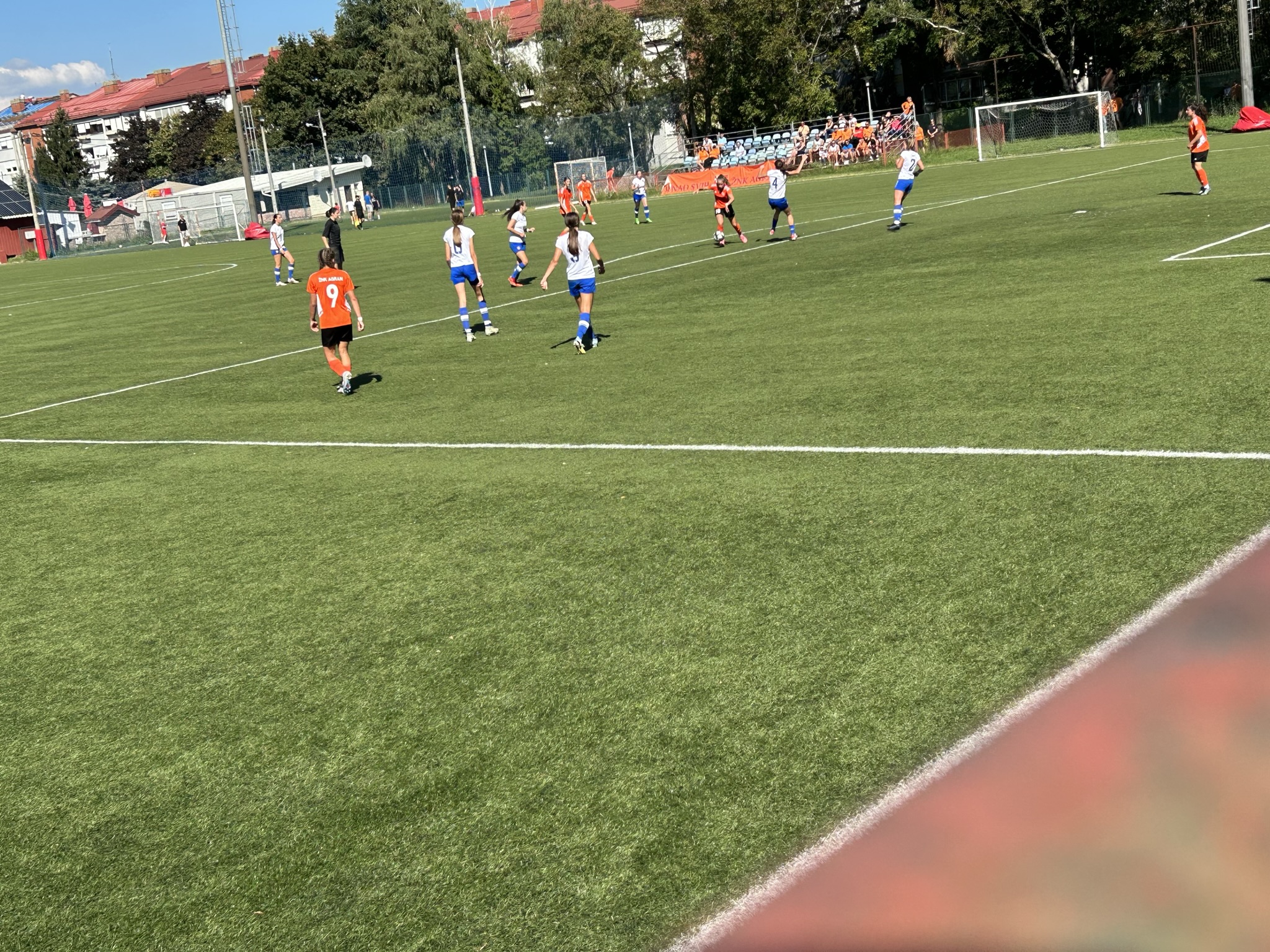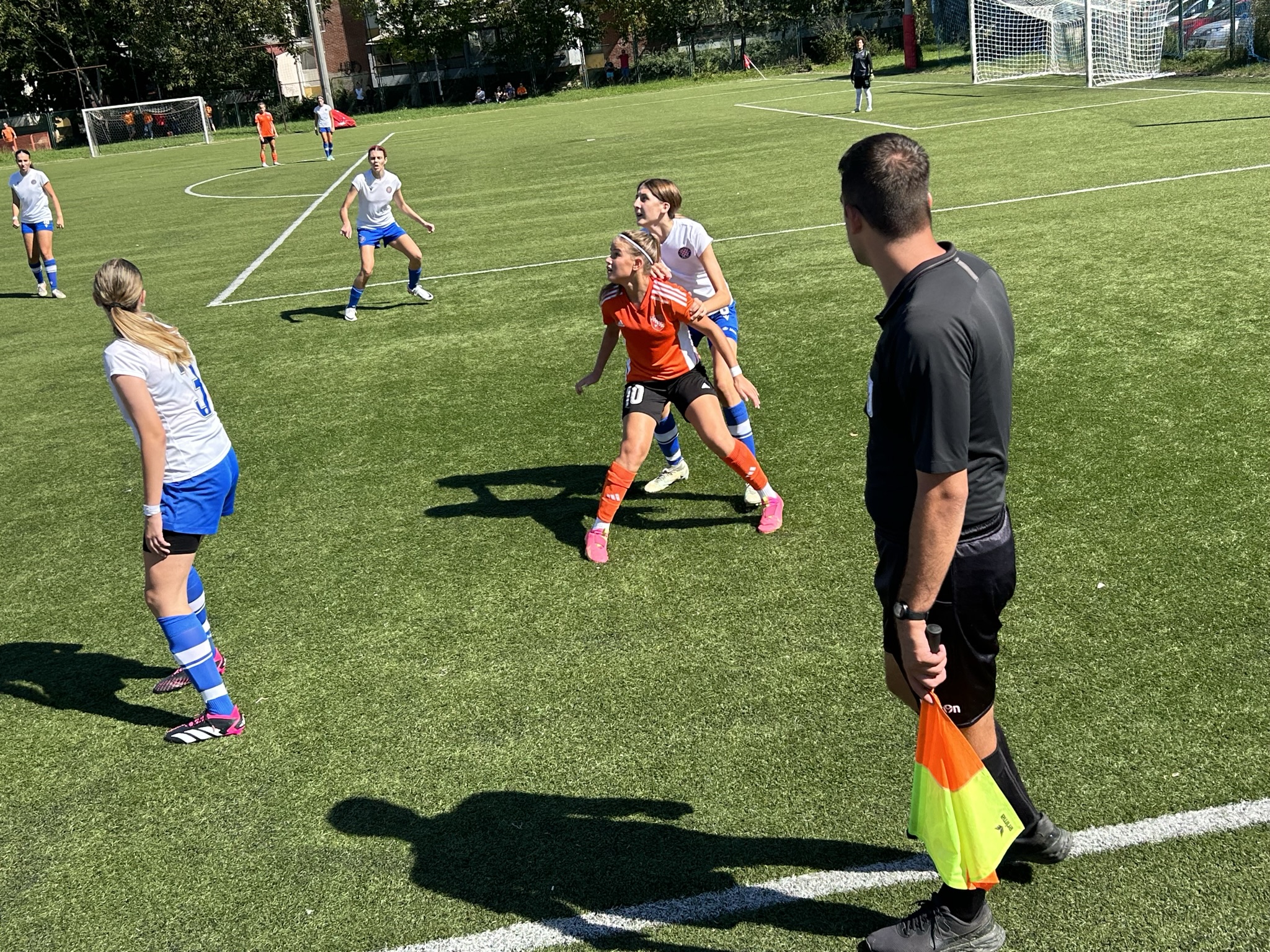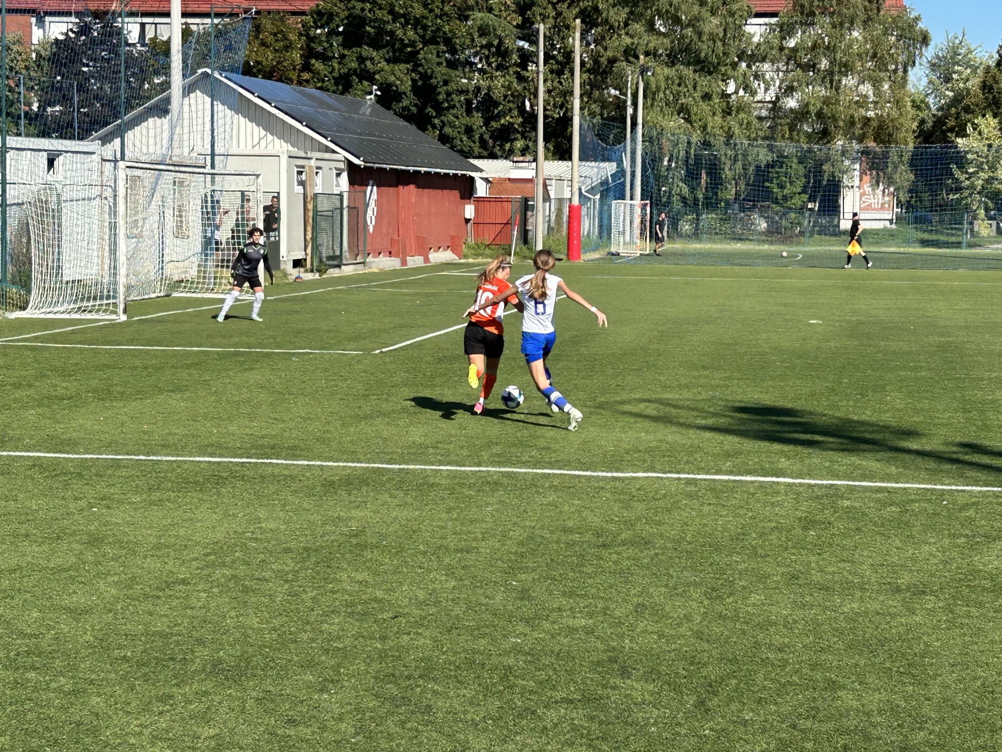 Hajduk se dobro držao prvih 10ak minuta, i u stvari su imali prvu odličnu šansu na utakmici, ali je njihova napadačica pucala ravno u golmanicu 😅. Kako to obično u nogometu biva, kazna je stigla pet minuta kasnije kad je Luana izvrsno asistirala Mariji bacivši joj savršenu loptu u for, Mare se ko vitar sjurila prema golu … i to je bilo 1 : 0.
