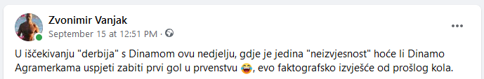 Prva utakmica, pobjeda protiv Hajduka 10:0. Druga utakmica, pobjeda u gostima kod Gorice 13 : 0, i onda, dva dana pred tekmu s Dinamom u trećem kolu komentar: