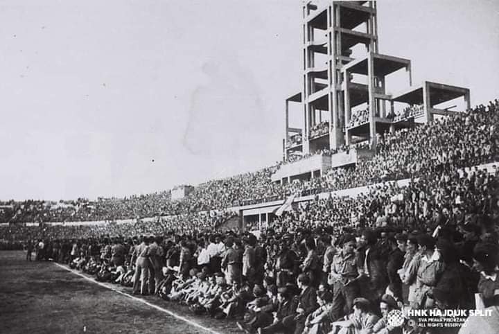 U Bariju se skuplja 50 tisuća duša i prati utakmicu Hajduk NOVJ : Reprezentacija britanske vojske. Jedan mali tim jedini je s okupiranih teritorija rekao fašističkim i nacističkim snagama da neće igrati u njihovim nakaradnim igrama. Barcelona kao ponos Katalonije nije smogla snage reći ne Francu, Olimpique Marseilles, iako od pamtivijeka doživljavan kao lijevi klub, igra ligu u višijevskoj Francuskoj. Proleterski Inter Milan osim što igra mora tolerirati i Mussolinijevu pošalicu promjene imena; sad su Ambrosiana. Hajduk je pak hrabro rekao Talijanima ne, a kako je to dovodilo i sam život u pitanje, od 1941. do 1944. godine su se igrači i uprava zapravo krili. Obnovljeni su četiri mjeseca prije utakmice, na Visu. Treba napomenuti, grad Split će čekati još mjesec i tri dana nakon ove utakmice da bude oslobođen od nacističkih snaga.