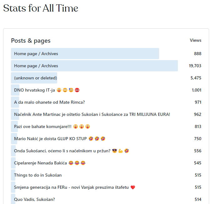 Tribati će opet ažurirati listu najčitanijih postova 🙄, ali neće mi biti teško 😎.