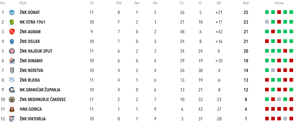 Ono što je zanimljivo je da bilo kakav rezultat tog završnog derbija sasvim sigurno smjenjuje Donat s vrha tablice 🤣. Pobjeda Agrama ili neriješeno (zbog gol razlike) stavljaju Agram na prvo mjesto, a pobjedom bi Istra također zasjela na prvo mjesto.