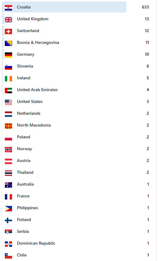 Na kraju liste su još Belgija i Mexico s po 1 posjetom … for completness.