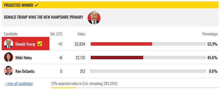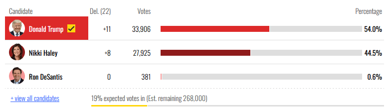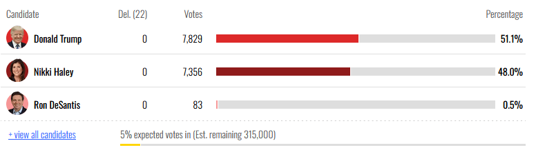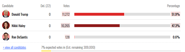 Eh da, preko 300 ljudi je glasalo za DeSantisa koji se povukao iz utrke prije skoro tjedan dana 🤣. Baš me zanima koliko će ih biti na kraju.