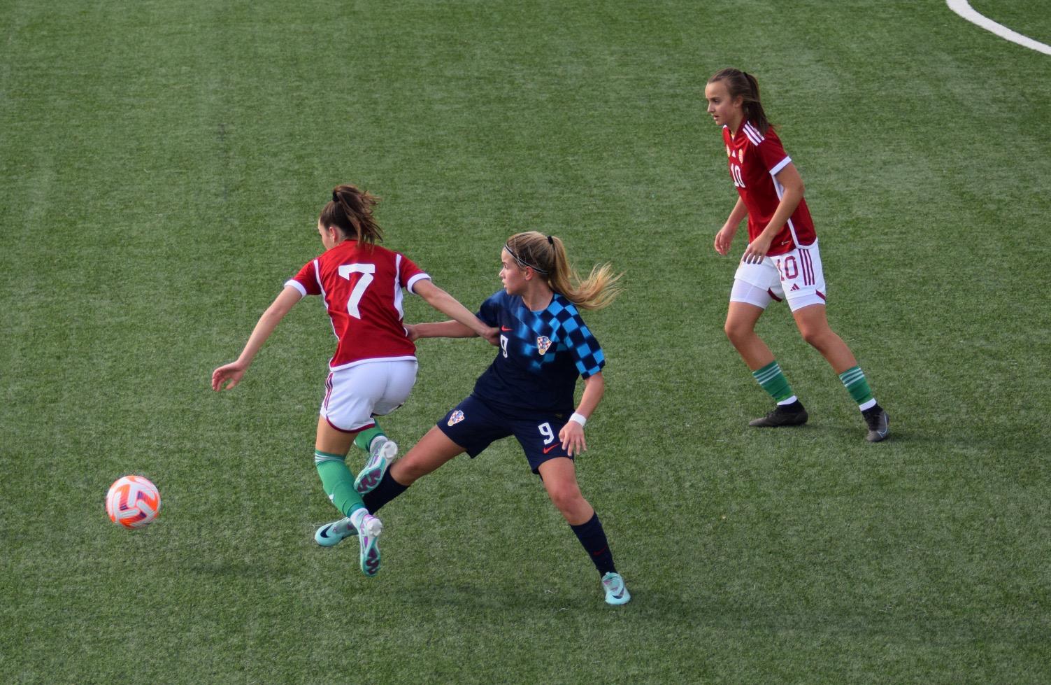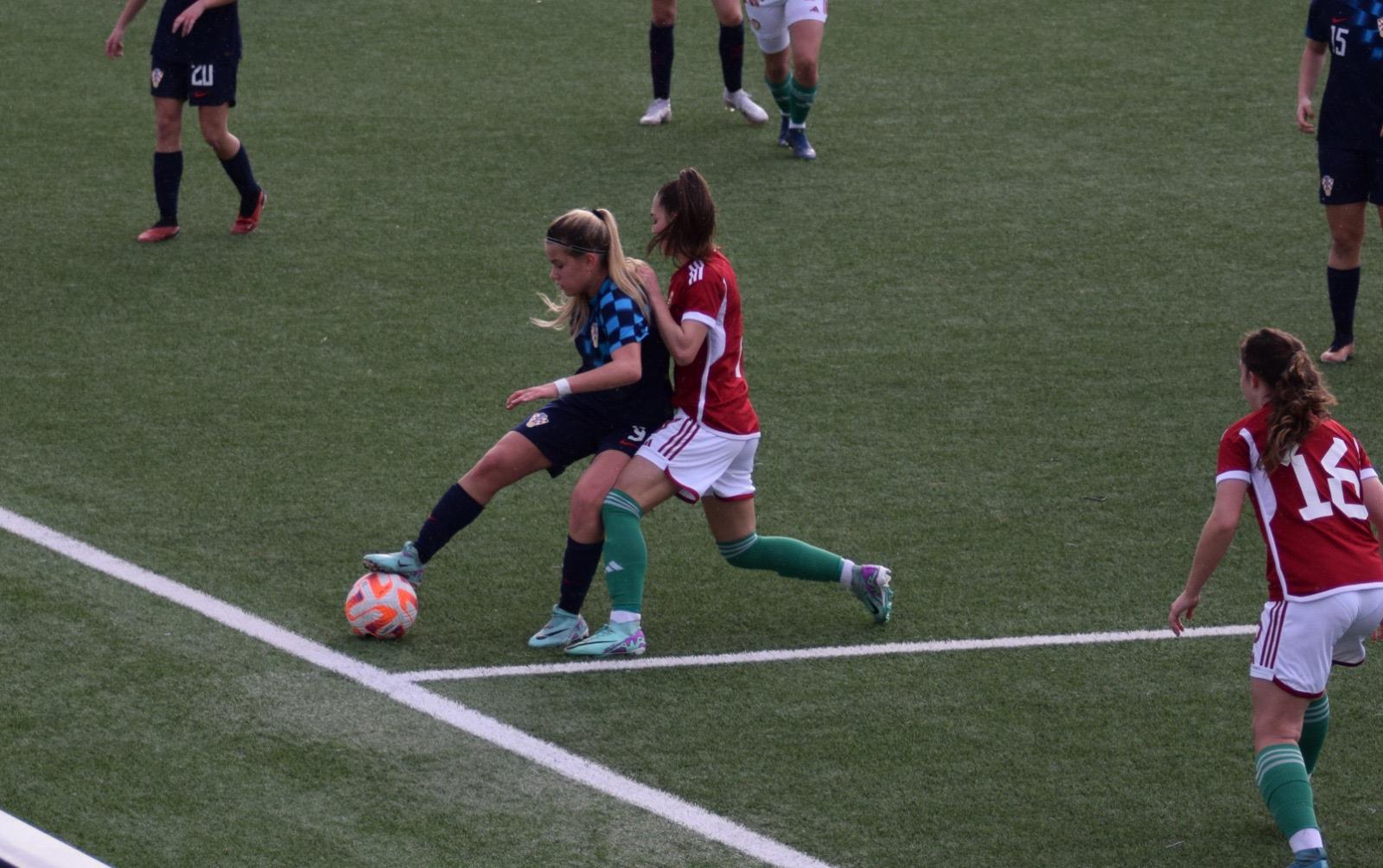 Hrvatice su od početka utakmice pritisnule Mađarice, i prvih 20ak minuta je to bila posve drugačija utakmica od one protiv Austrije neki dan, Laura Perković ❤️ je po lijevo strani imala par jako lijepih prodora, i iako ti nabačaji nisu rezultirali nekim značajnim šansama, pritisak je bio konstantan.