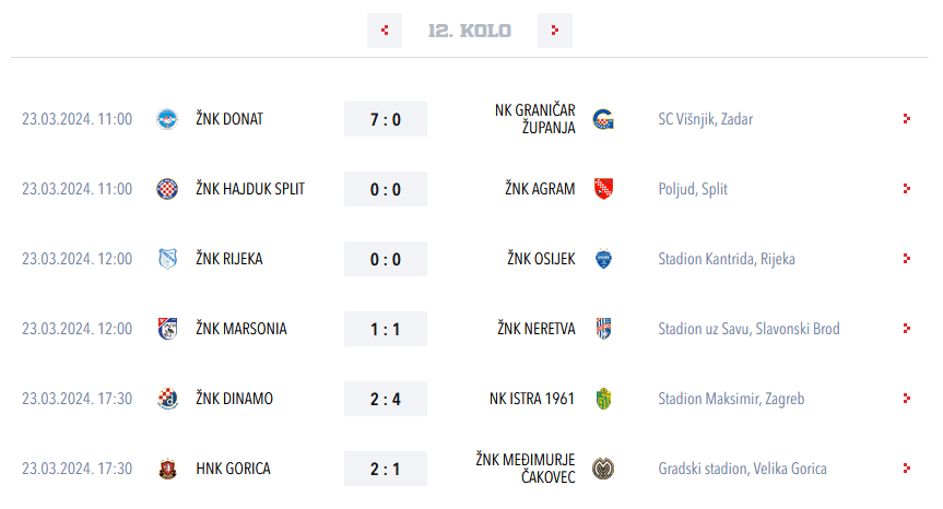 Update – pohvale HNSu zbog ažurnosti. Evo i kompletnih rezultata 12. kola: