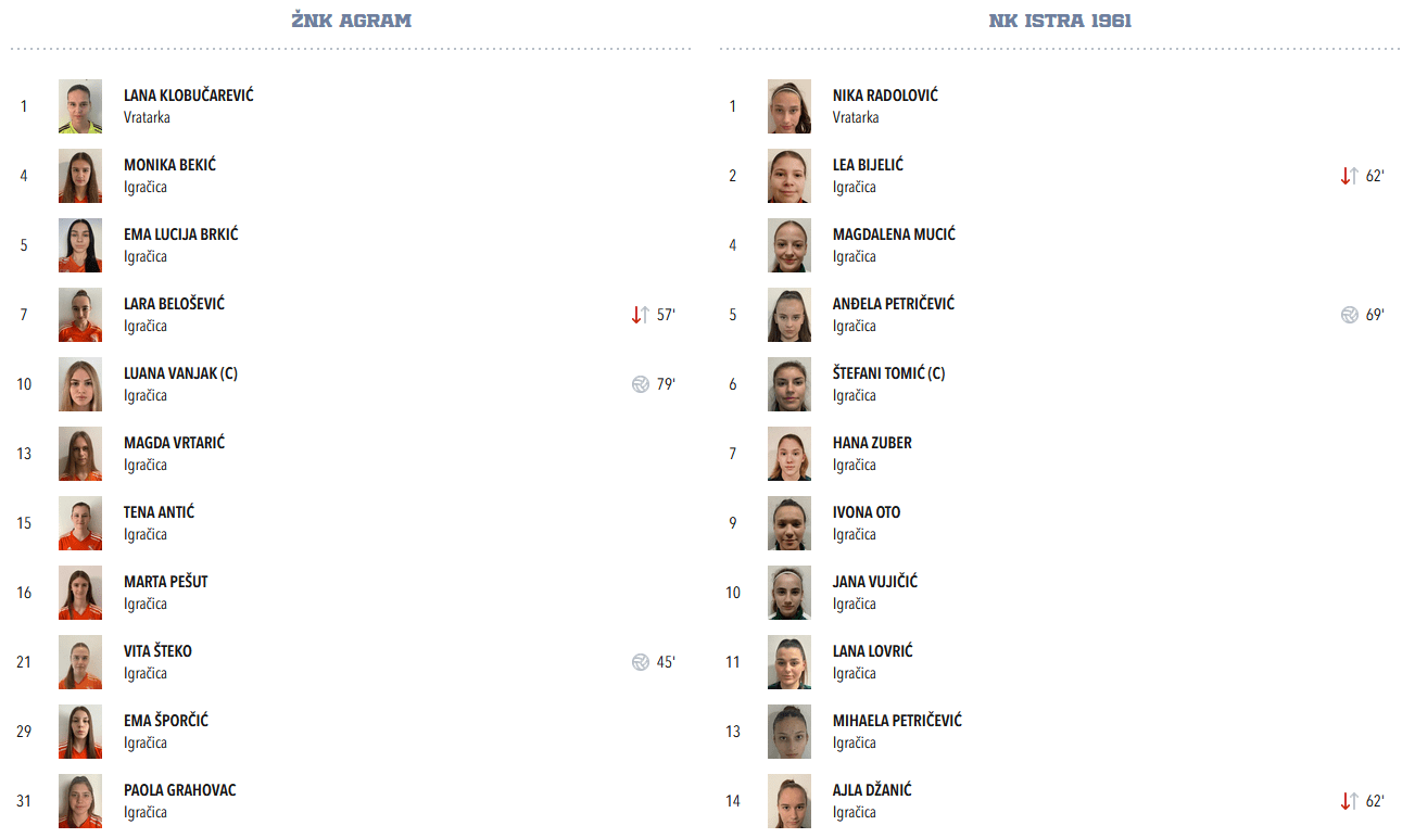 U predstavljanju glavnih aktera svakako se još moraju spomenuti Nika Radolović, vratarka Istre i Štefani Tomić, njihova kapetanica i stožer obrane, obje naravno WU-17 prvotimke u nacionalnoj repki.
