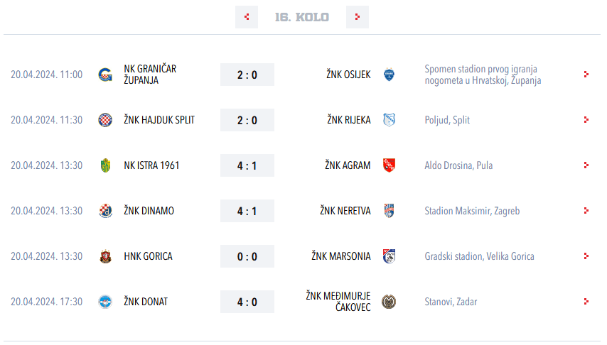 17. kolo – Agram – Međimurje, Hajduk – Donat