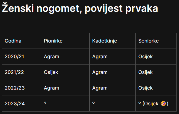 Uglavnom, iako Osijek jest blagi favorit, ništa to još ni blizu nije gotovo. Agramerke samo (čuj mene, “samo” 😮❤️) moraju nastaviti gaziti kao u zadnjih par kola, pokazati istu razinu ozbiljnosti, srčanosti i kvalitete, i nema se tu što filozofirati – IDEMO PO DVOSTRUKU TITULU 💪💪💪.