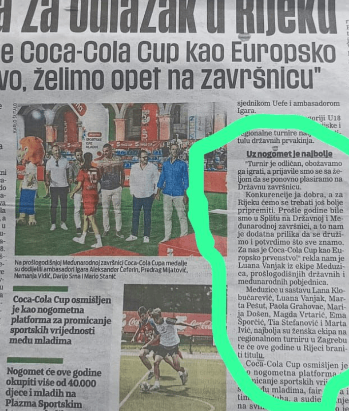 Počela su natjecanja u Coca Cola Cupu, najvećem evropskom amaterskom malonogometnom turniru, namijenjenom dečkima od 2006. godišta i mlađim te djevojkama od 2008. godišta i mlađim, i Luana je sa svojim Meduzicama suvereno odradila posao u prvom krugu turnira na regionalnom turniru u Zagrebu.