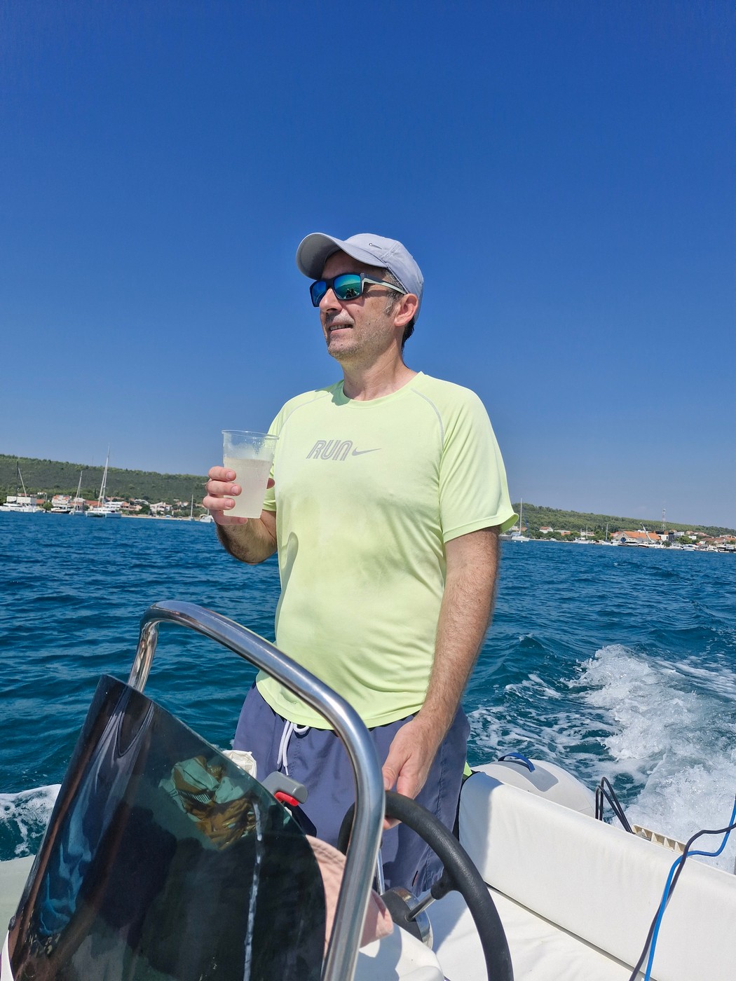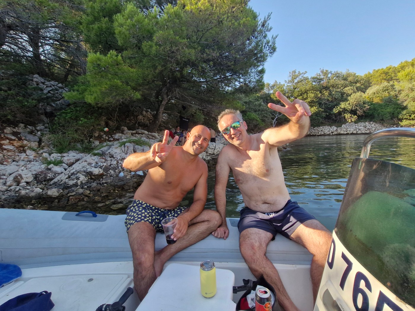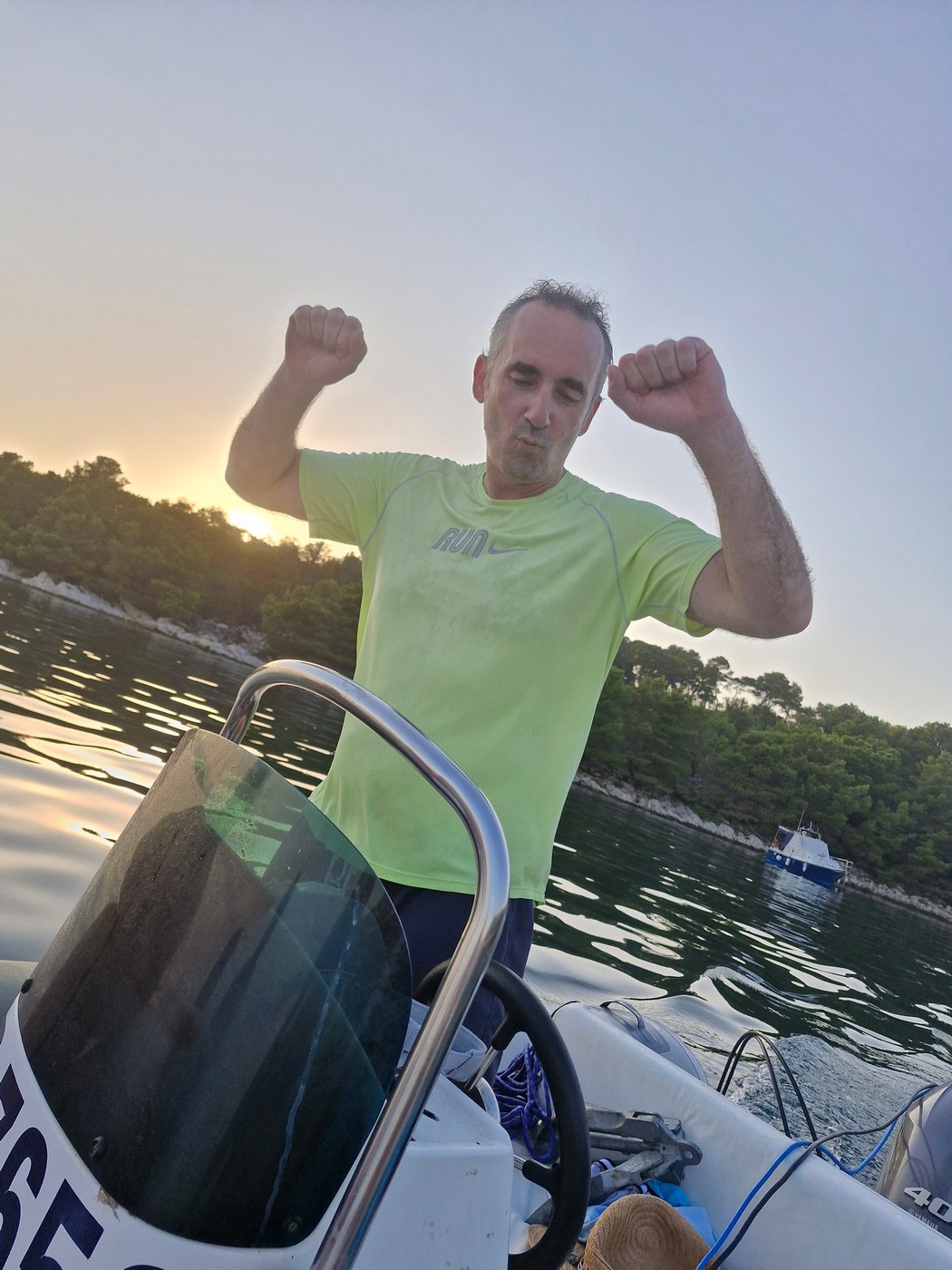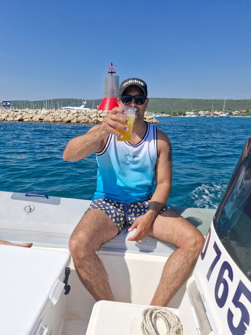 Jebate, što je bilo vruće 🤣🤣🤣. More je bar 27 stupnjeva, sunce prži a nema ni daška vitra, nema tende na gliseru … ako stojimo, znojenje na max. Srićom, nismo puno stajali 💪.