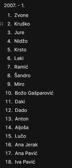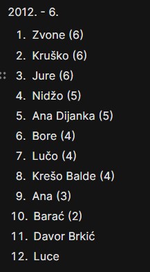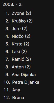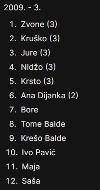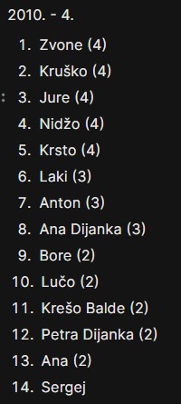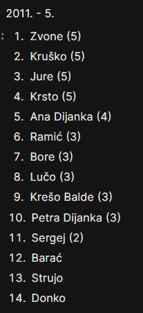 Ali, ipak bi bilo ljepše da je na ovoj tablici s popisom svih sudionika, ovaj broj u zagradama koji predstavlja ukupan broj sudjelovanja na Memorijalnim piciginima, kod više ljudi malo veći.